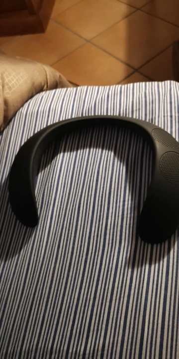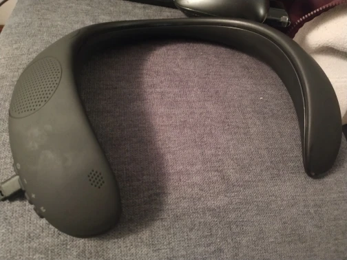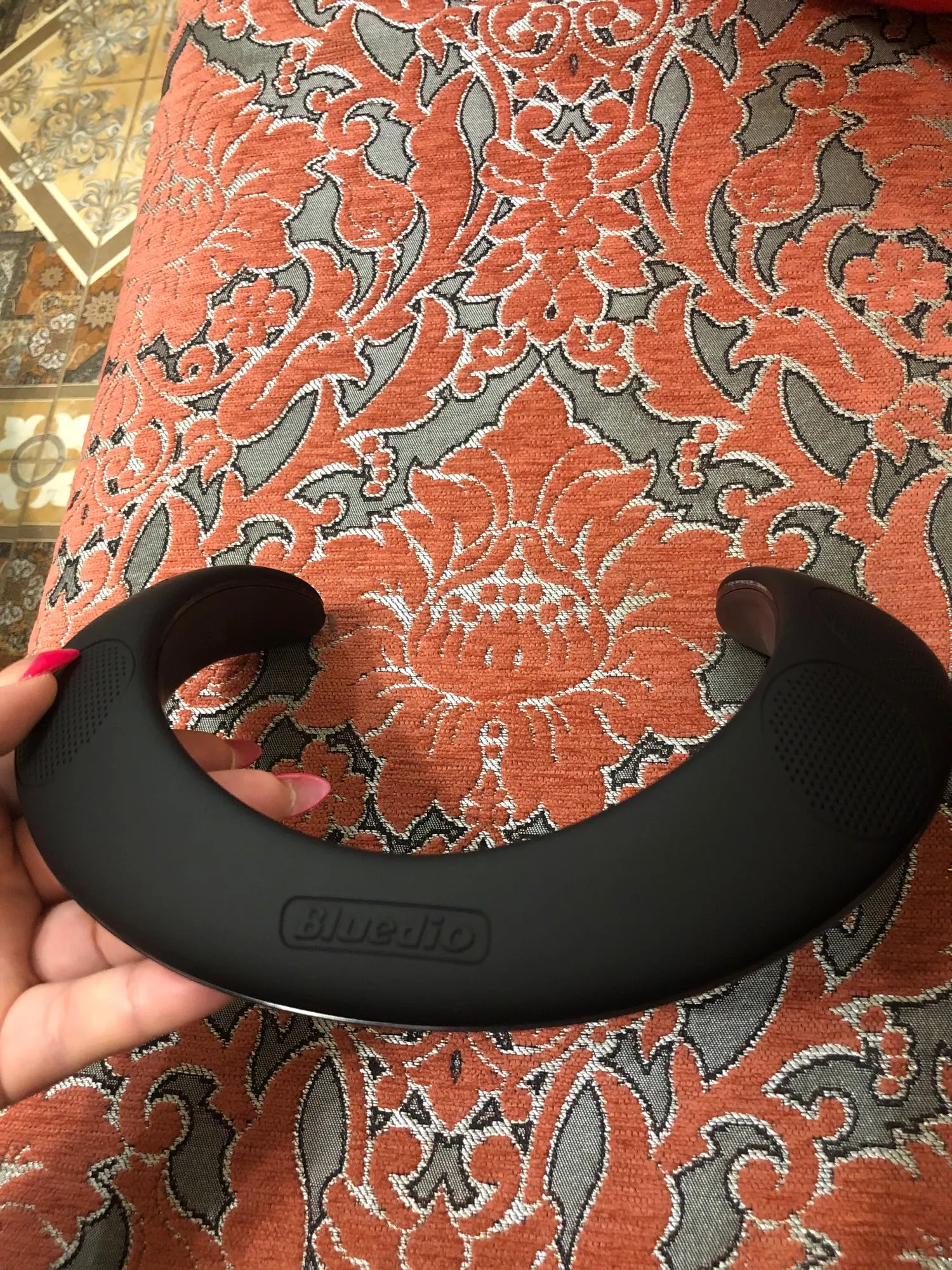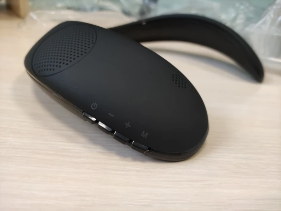 Колонку доставили очень быстро, курьером на дом. Подключилась к телефону без проблем. Звук приятно удивил, довольно качественный, обьемный. При звонках слышны посторонние шумы, немного глуховато. На шее ощущается, но не тяжело. Сделана из пластика, сверху как будто резиновая на ощупь. Подойдёт для ходьбы или езды на велосипеде. Плюс в том, что уши свободны и слышно все звуки вокруг на улице. В целом довольна, интересная игрушка.