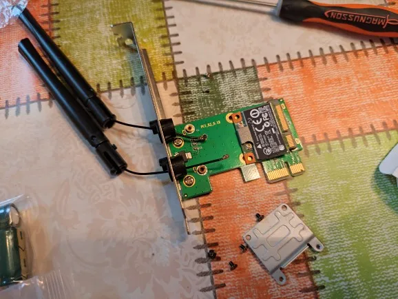 То, что надо - после апгрейда WiFi карты в ноутбуке осталась старая WiFi карта Qualcomm Atheros b/g/n, с помощью этого адаптера установил её в старый системник в PCIe слот, теперь использую его в качестве точки доступа. Будьте особенно осторожны с антеннами и их кабелями. Для miniPCIe карты понадобится переходник, как у меня.