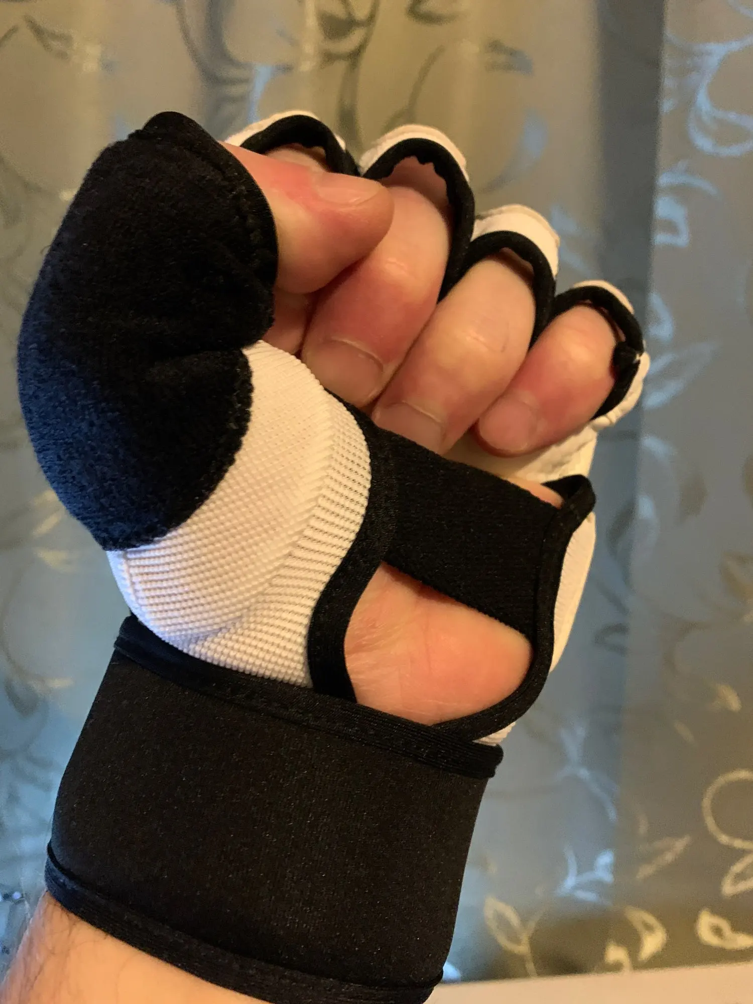 Они оба Потрясающие и хорошо сидят., он прибывает очень быстро в течение 2 недель. Я очень доволен всем. Перчатки не такие толстые, как боксерские перчатки, но они действительно обеспечивают хорошую защиту для начинающих и действительно хорошо подходят для тяжелой атлетики. Подушечки для ног Потрясающие.