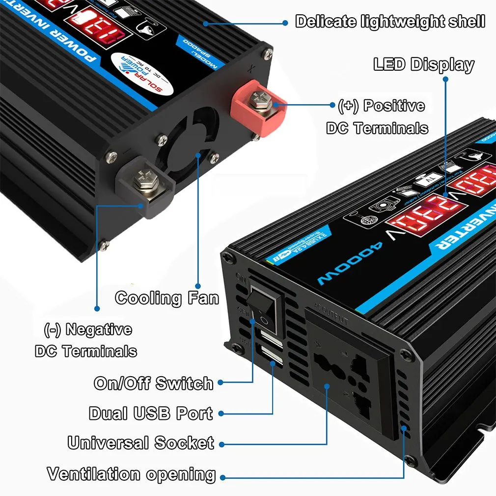 4000 Вт 12 В до 220 В110 В светодиодный автомобильный преобразователь мощности, зарядное устройство, адаптер, двойной USB трансформатор напряжения, Модифицированная синусоида