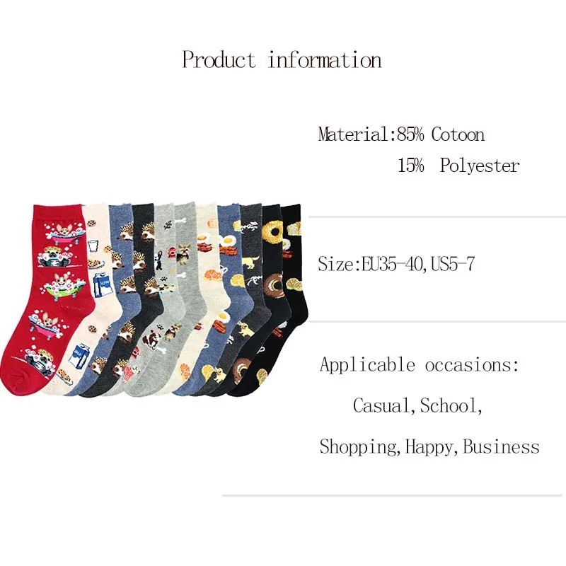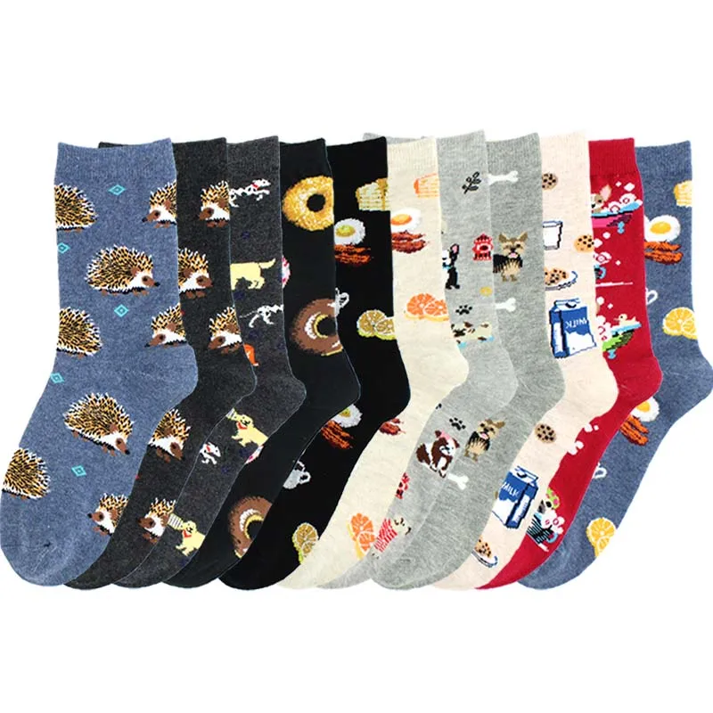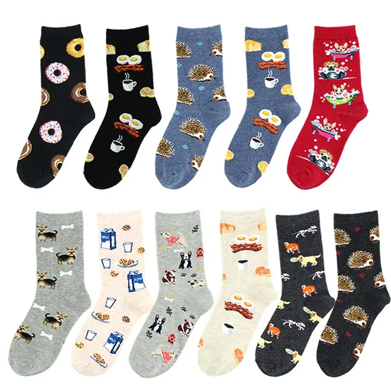 Носки женские SOPLCAALCK, Милые Носки с рисунком ежика, собаки на завтрак, яйца, смешные носки Харадзюку