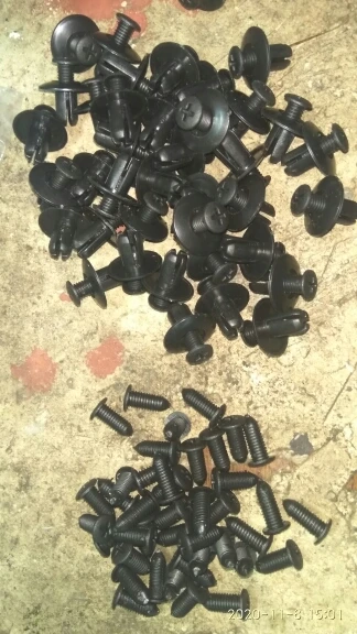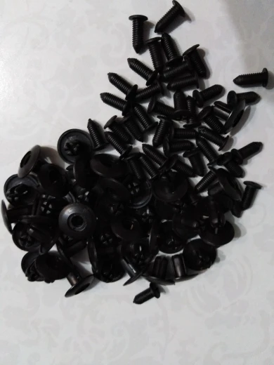 Пластмаски. Как недостаток: крестообразное углубление на винтах не глубокое (плоское, не имеет центрального углубления) крестовая отвертка не утапливается в пазу и гальмует. Плоская тоже не имеет полного контакта. При нажиме отверткой головка винта легко раскалывается. Применял на авто в месте крепления пластиковой накладки на крышку багажника форда. Родовые стоят более прочные. А с этими нужно на "вы".
