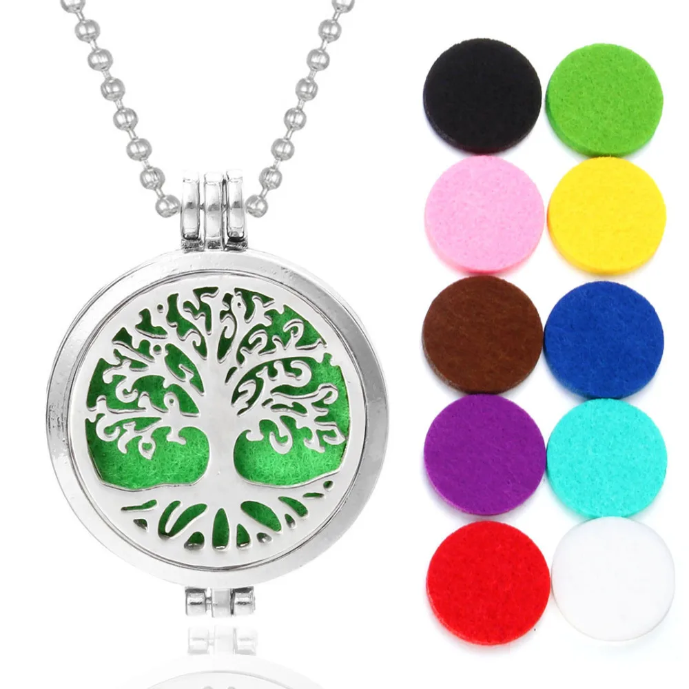 Новый ароматерапия ювелирные изделия Древо жизни ароматическое ожерелье эфирные масла диффузор ожерелье медальон кулон бесплатно с 10 шт. масляные колодки