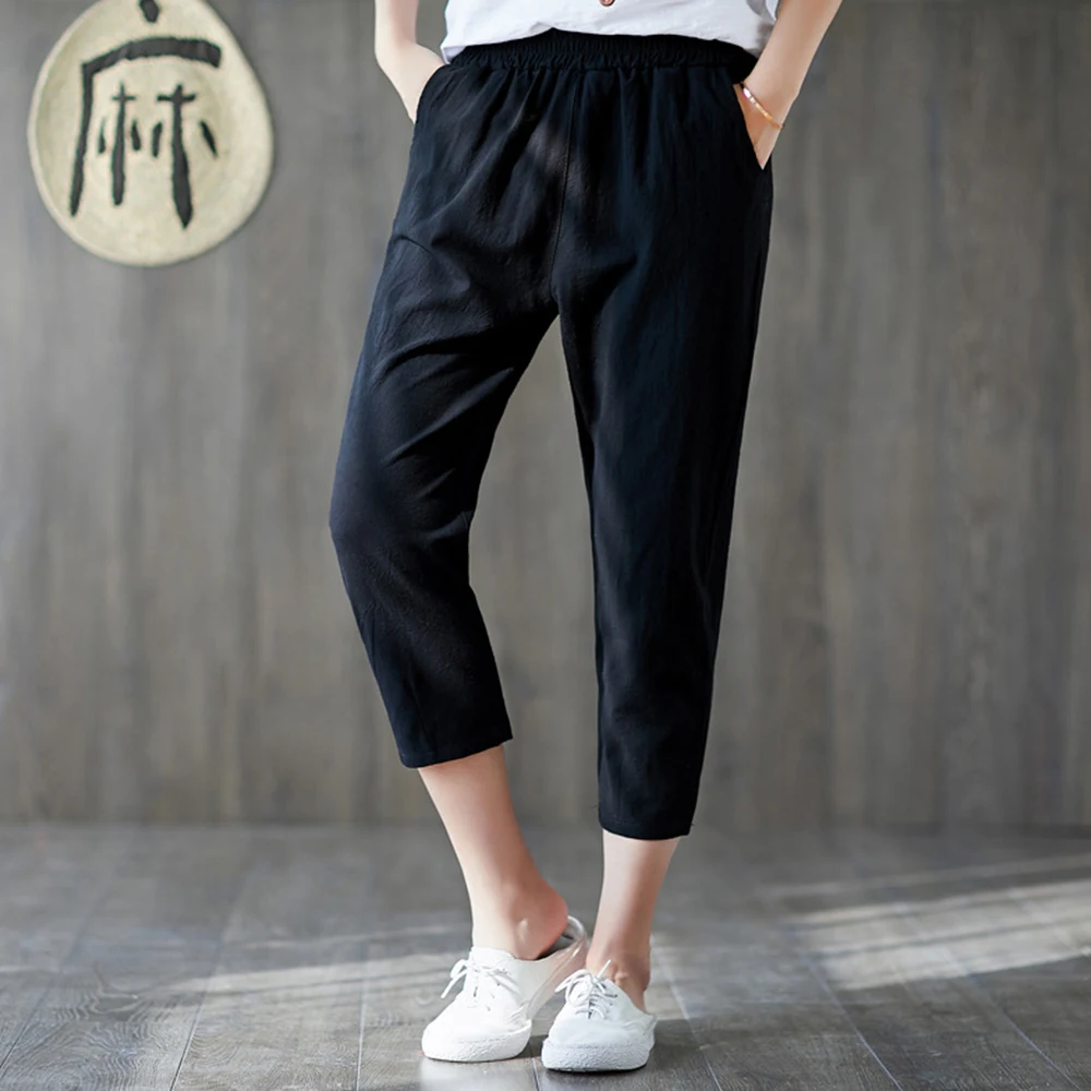 Брюки женские летние из хлопка и льна, свободные, с высокой талией,...