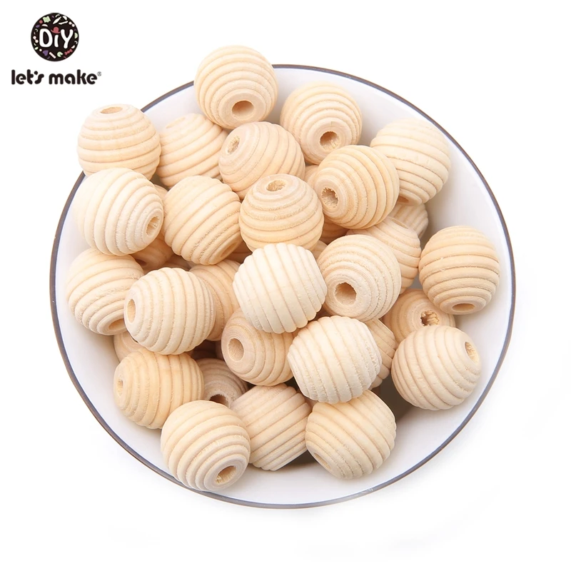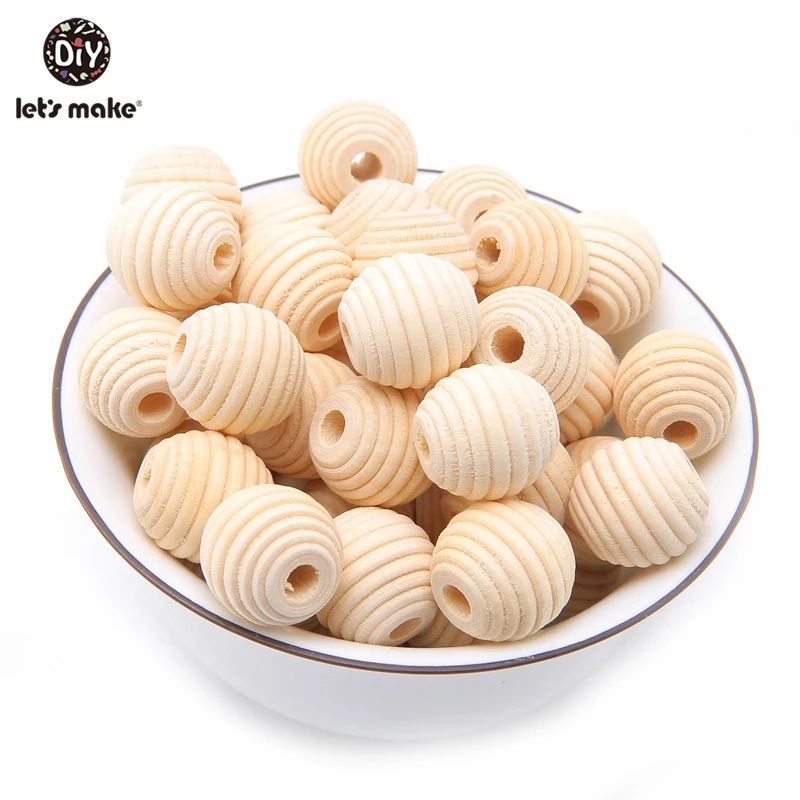 Деревянные бусины для прорезывания зубов Let's Make, 200 шт., 18 мм, незаконченные нетоксичные, искусственная резьба, резная шариковая бусина, детский Прорезыватель для зубов