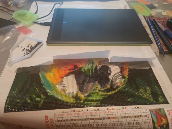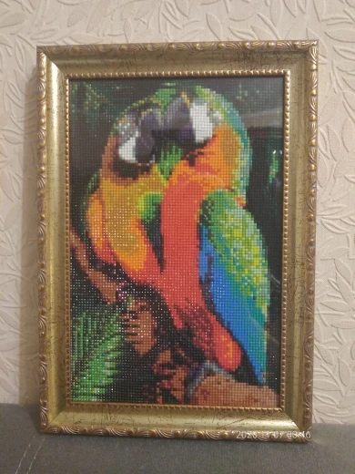 Красивая мозаика, все в комплекте, приехала очень быстро. Единственный минус - символы очень мелко и нечетко напечатаны, на темном фоне черным цветом вообще не разобрать, за это снижаю оценку