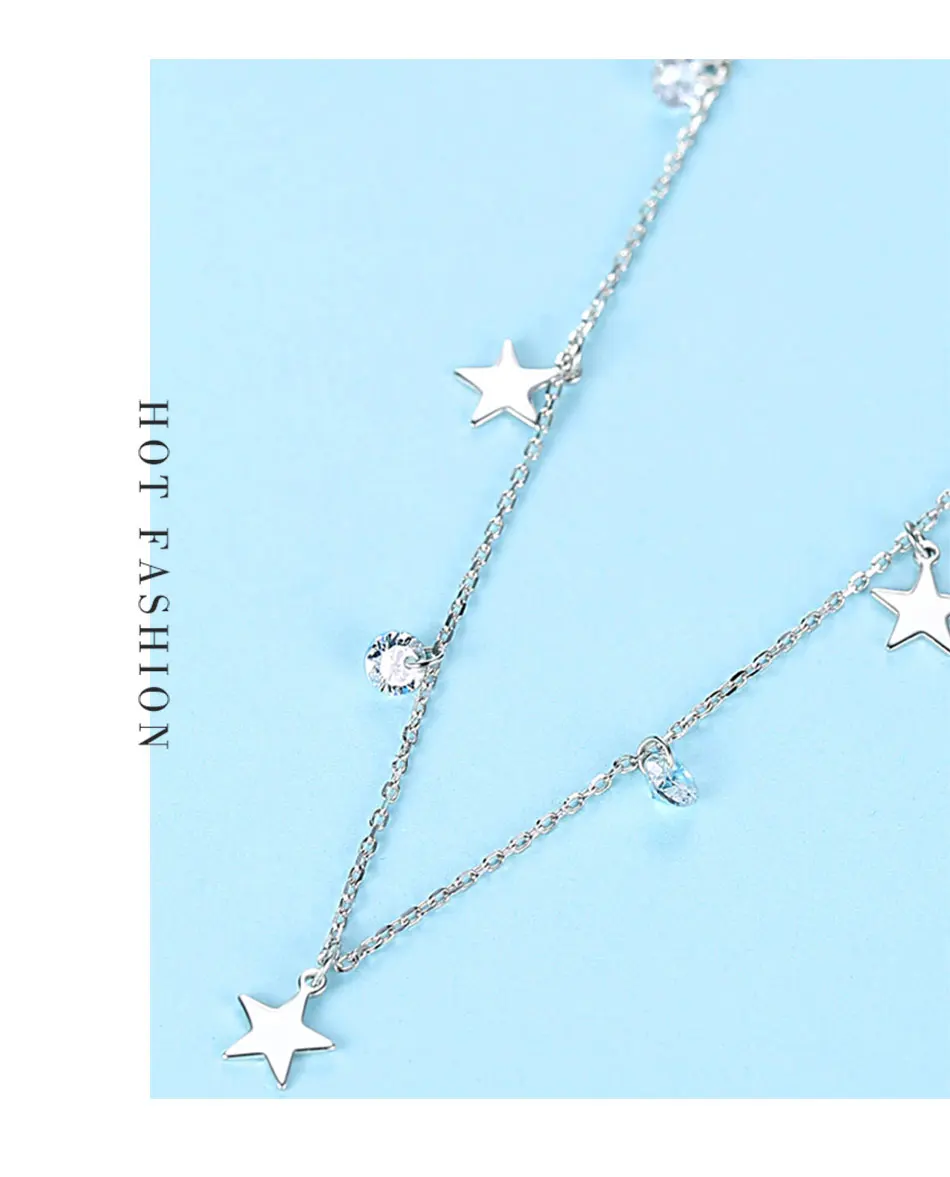 Женское ожерелье с подвеской в виде звезды, из серебра 100% пробы