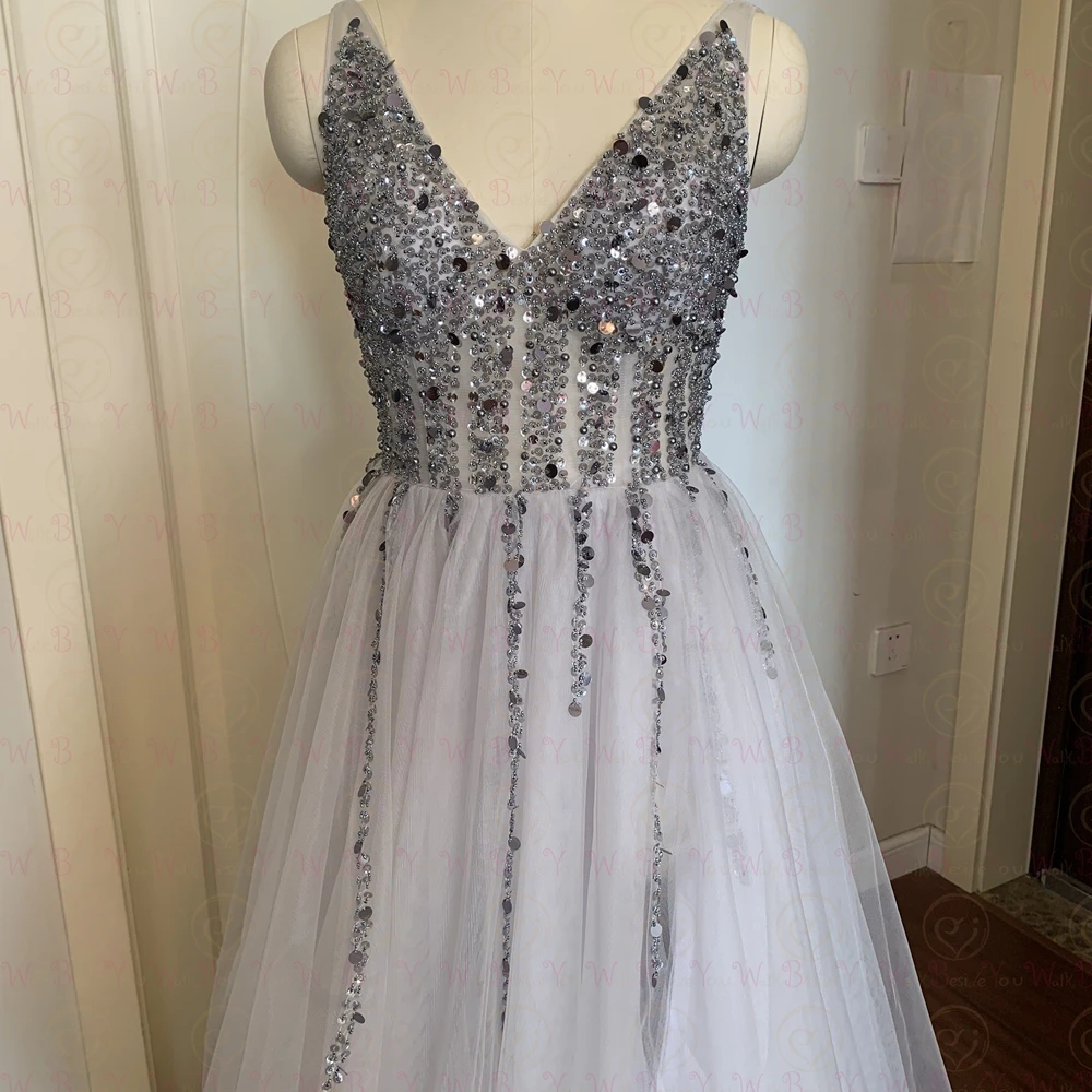 Высокая Разделение сексуальный v-образный вырез Бисер платья для выпускного вечера со стразами 2021 Для женщин платья партии официальная вечеринка с низким вырезом на спине праздничные платья для женщин вечернее платье