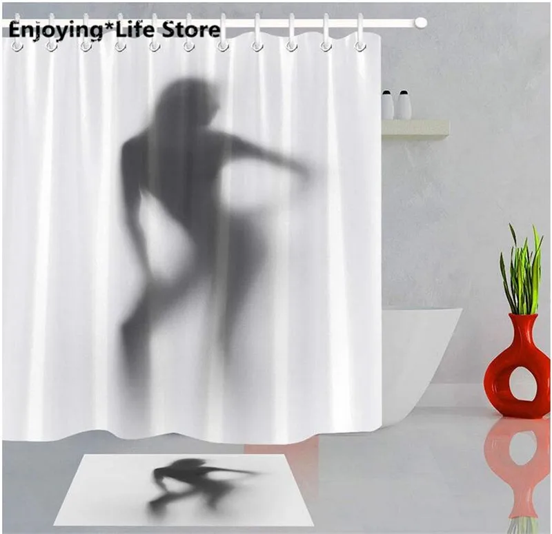 Занавеска для душа с привлекательной девушкой, декоративная занавеска для ванной комнаты с привлекательной позой, занавеска для душа из ткани с крючком, 72 дюйма (коврик 24x16)