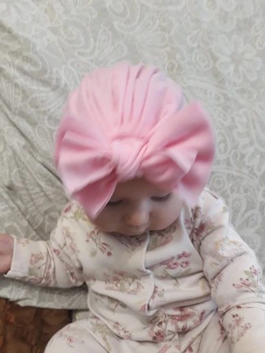 Шапка-тюрбан детская, однотонная, весна-осень, с цветочным бантом, ...