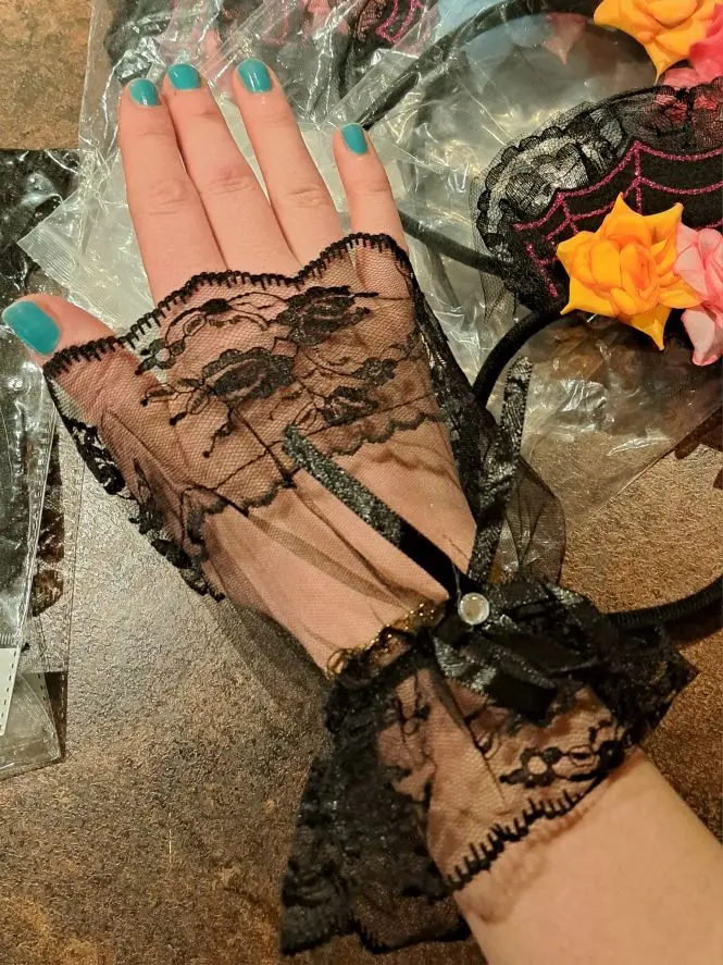 Манжеты кружевные женские, черные, для Хэллоуина, на запястье, на свадьбу, солнцезащитные, с бантом, для Стразы