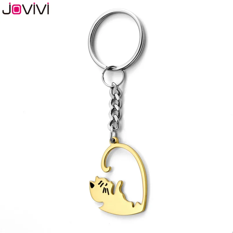 Jovivi 2pcs его совпадающая головоломка, Yin Yang Cat, Брелки для пар, кольцо для ключей из нержавеющей стали в виде сердца, BFF, пара, цепочка для ключей, ювелирные изделия