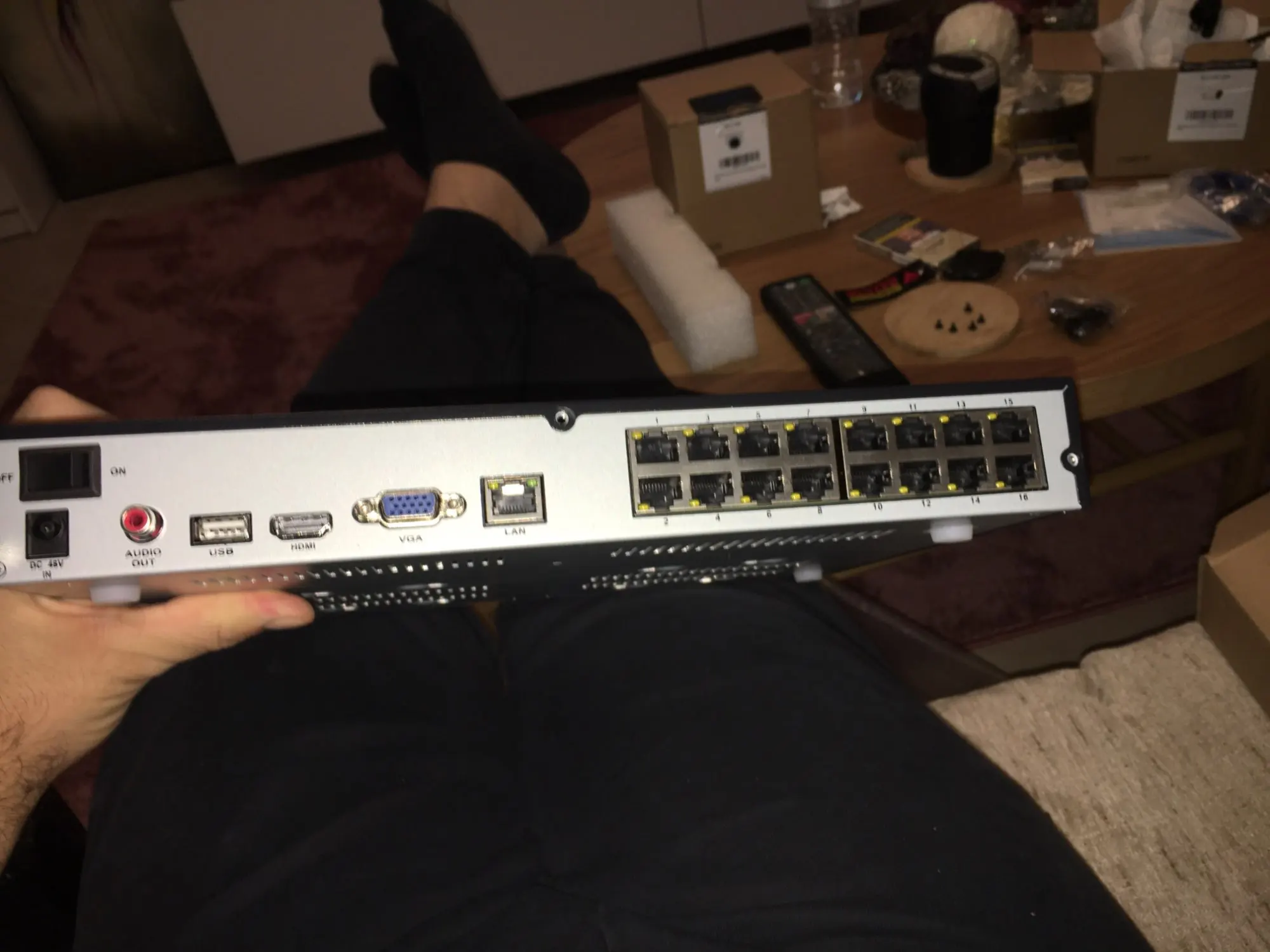 A:Здравствуйте, у нас-это то, что в коробке:1 x 16CH 8MP NVR RLN16-4101 х 48V PoE NVR для адаптера переменного тока1 х USB мышь1x1 м Cat5 кабель1x1 м кабель HDMI * 1Руководство по быстрому старту (1 шт.) брошюра