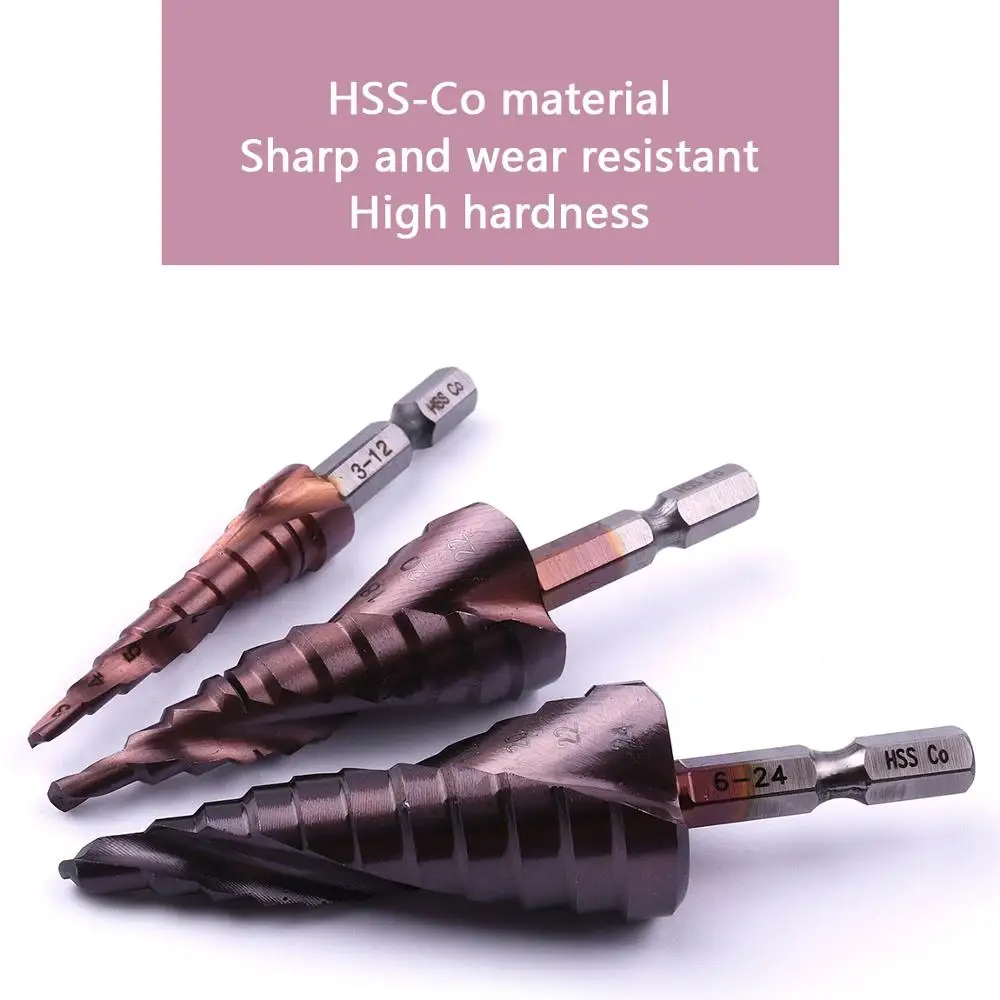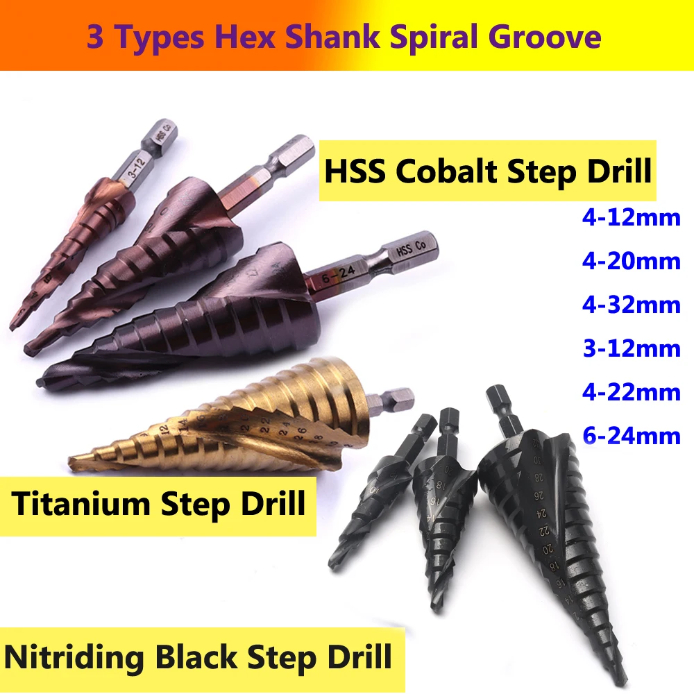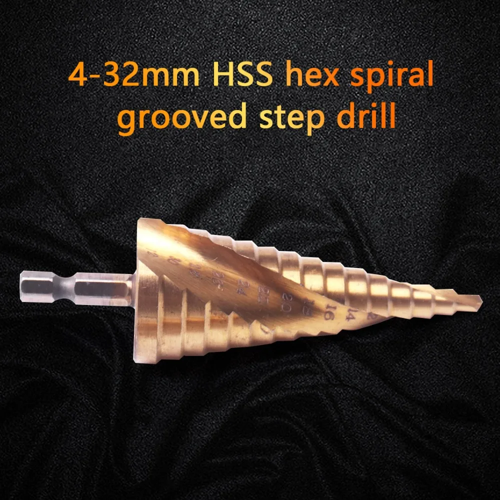 Ступенчатое Коническое сверло 3-124-226-244-122032 мм, ступенчатое сверло из быстрорежущей стали, с нитриднымтитановым покрытием, с шестигранным хвостовиком, для резки металлических отверстий