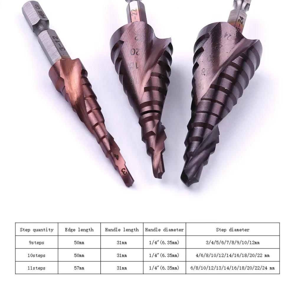 Высокая твердость, уникальная ступенчатая структура, дрель может открыть различные размеры диафрагмы.