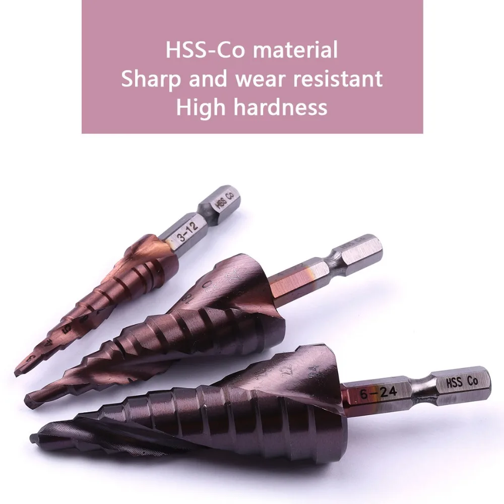 Изготовлен из HSS-Co, термообработка к нему, высокая твердость, высокая износостойкость, высокая прочность, высокая прочность на изгиб, острый край, лучший выбор для обработки нержавеющей стали, лучше, чем обычная ступенчатая дрель.
