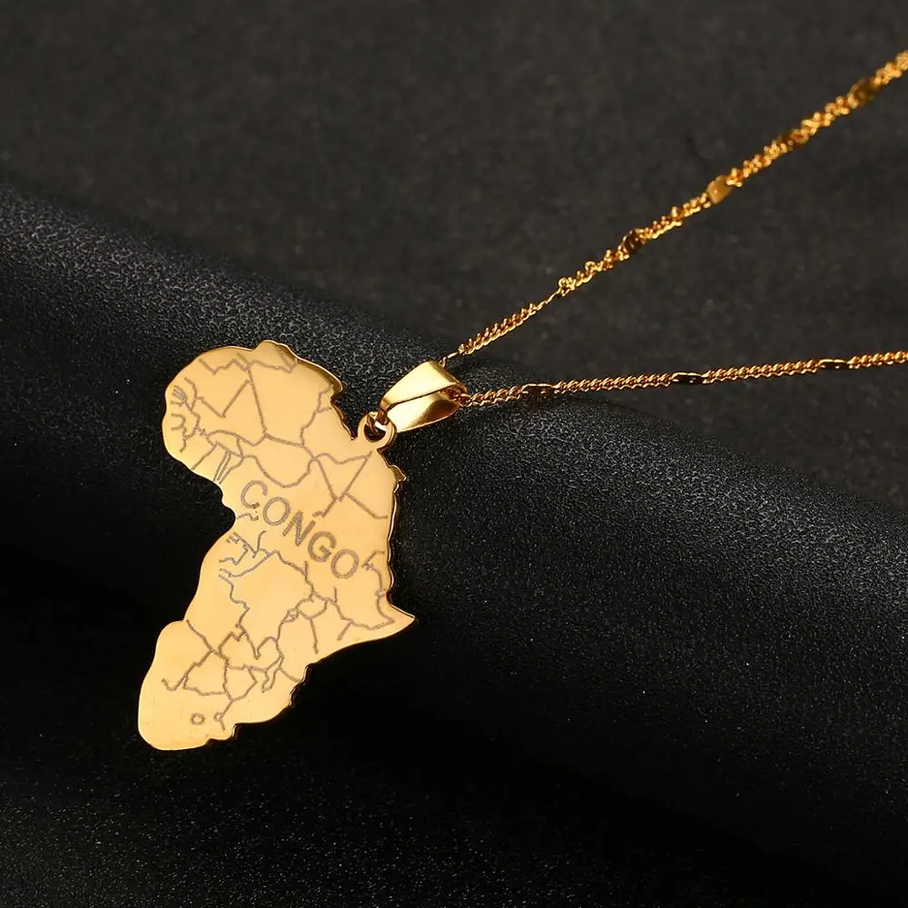 Модные ожерелья из нержавеющей стали с подвеской в виде карты Африки с Конго