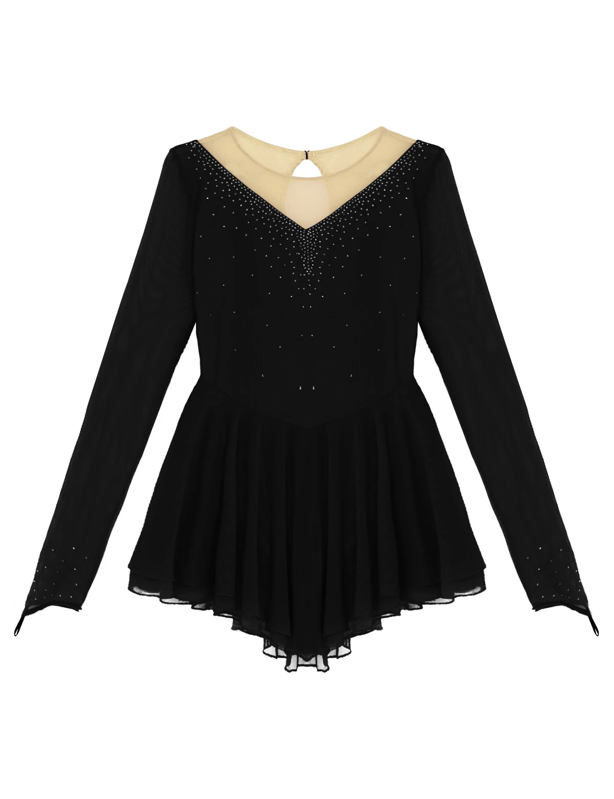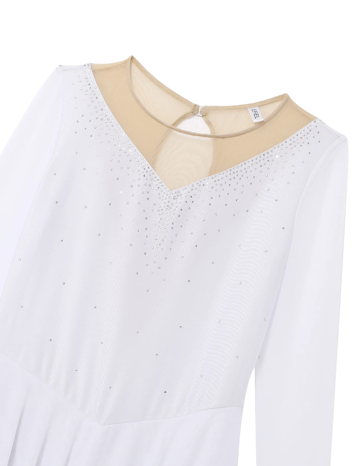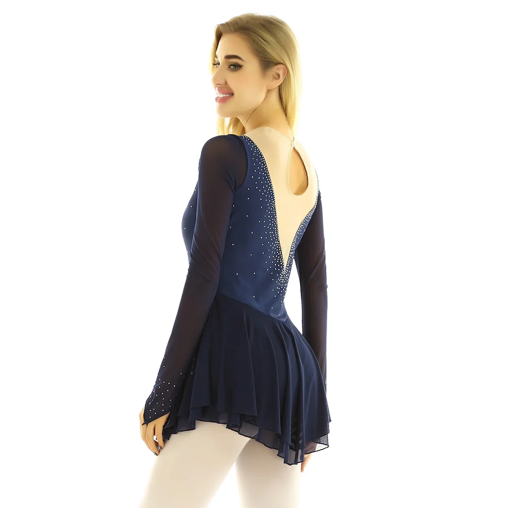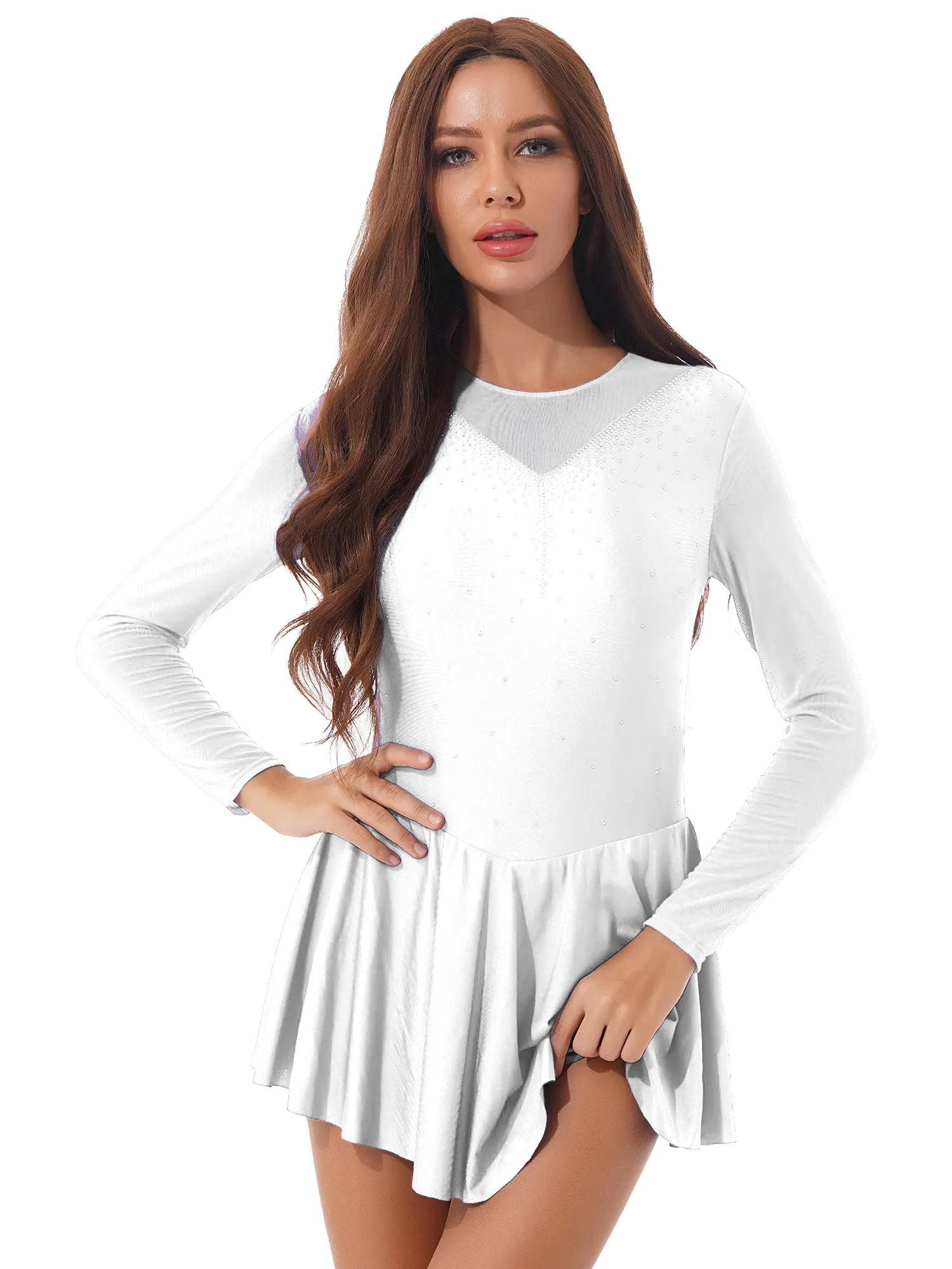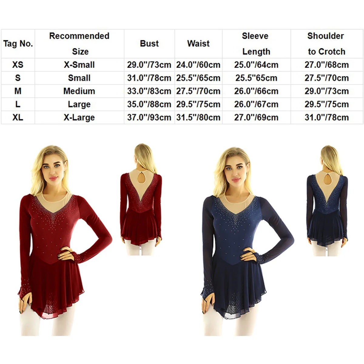 Костюм для танцев и балета TiaoBug, блестящий купальник с длинными рукавами, фигурка из стразов