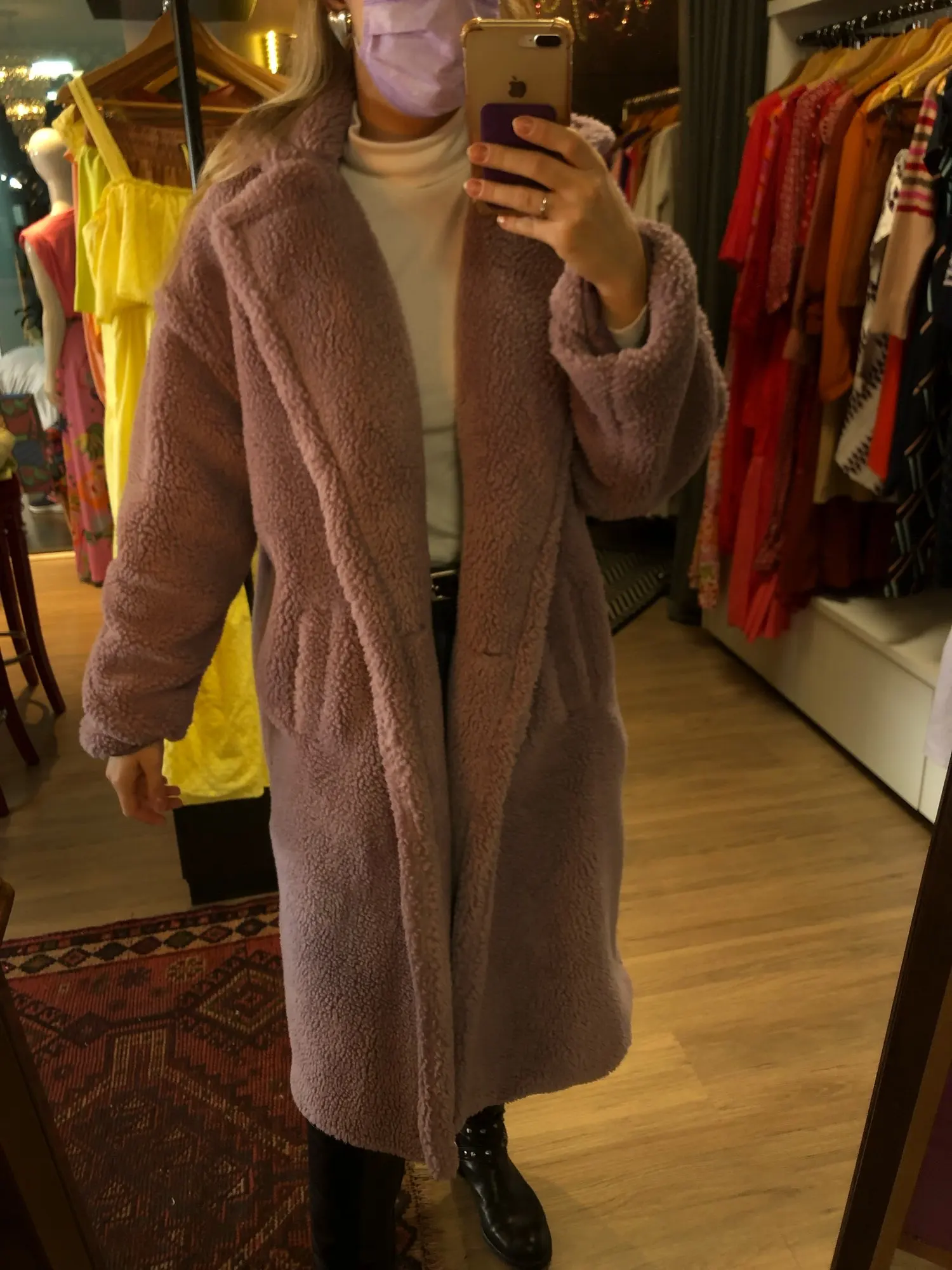 Тедди куртка из искусственного меха пальто длинное розовое меховое ...