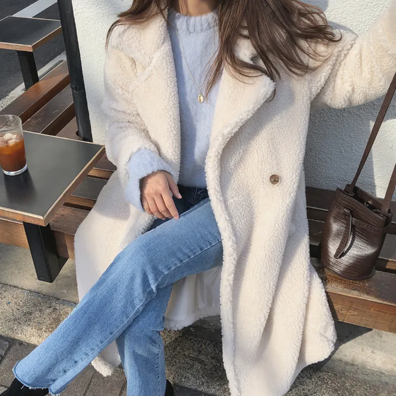 Шуба женская из искусственного меха, Повседневная Длинная шуба оверсайз из искусственного меха овечьей шерсти