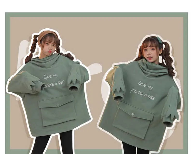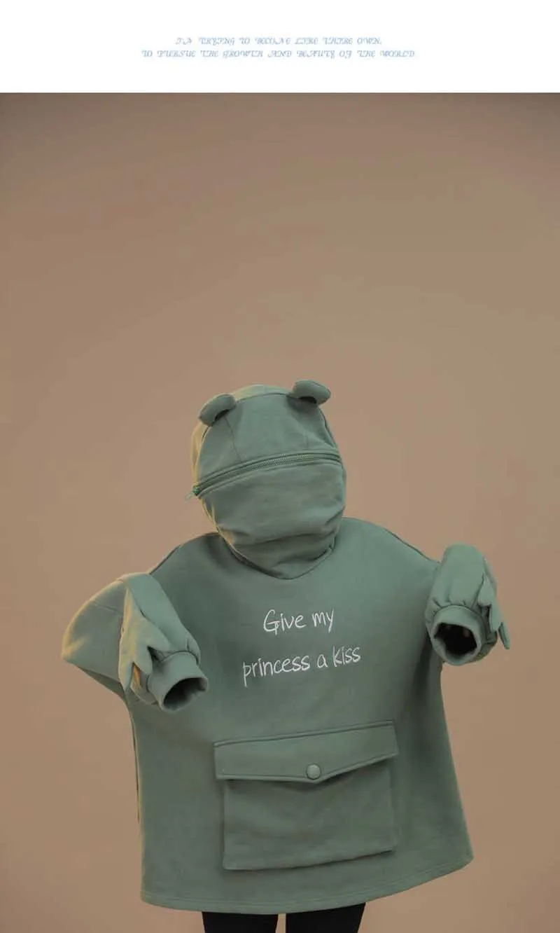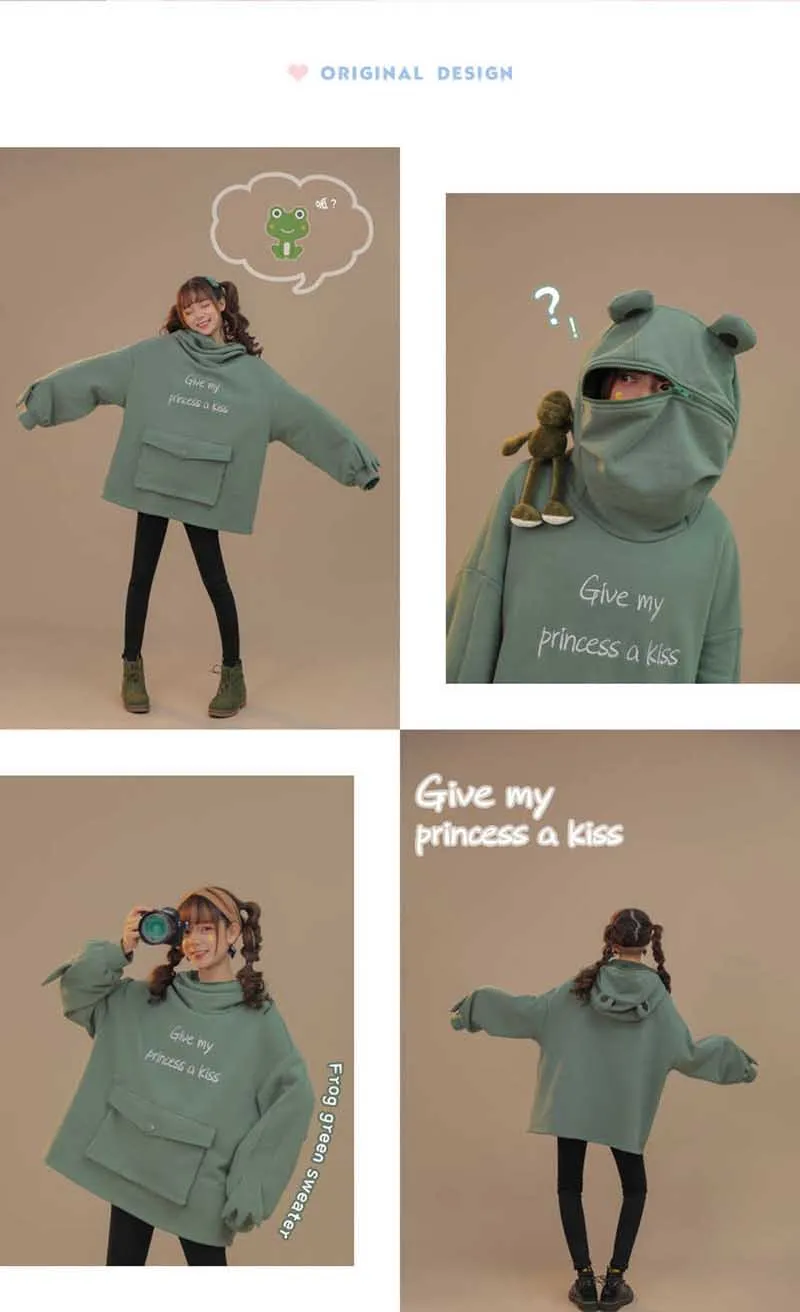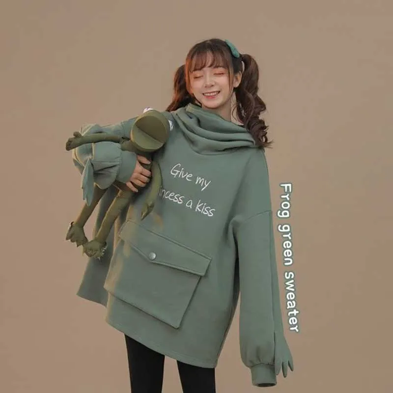 Женская толстовка NiceMix, осенняя Толстовка свободного кроя в стиле Харадзюку, с надписью, с принтом в виде лягушки, с капюшоном, пуловер, женский, утепленный
