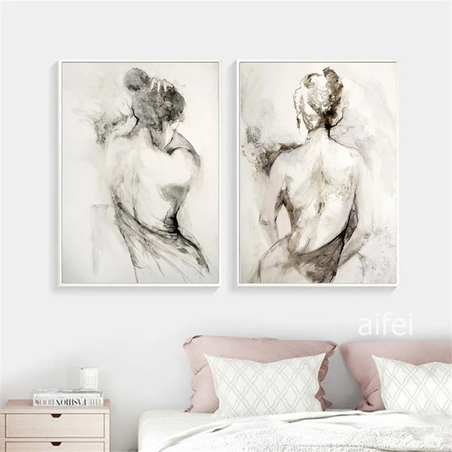 Абстрактная черная белая женская сексуальная обнаженная задняя картина маслом на холсте плакаты и ПР...