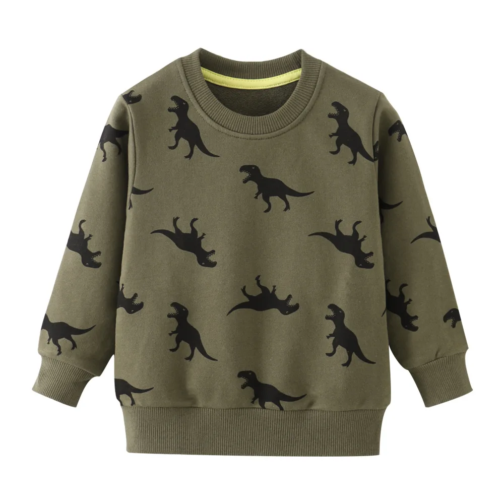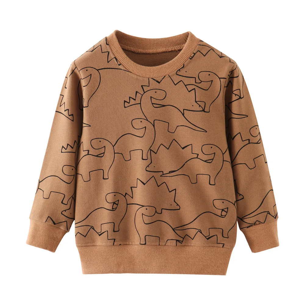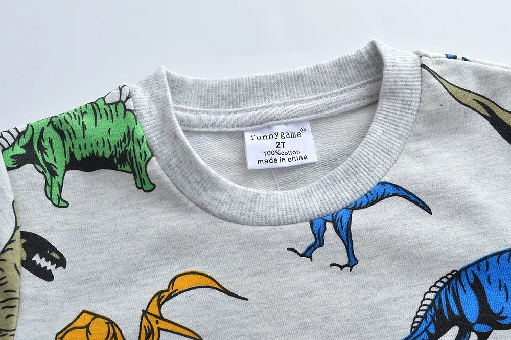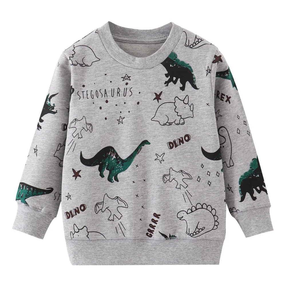 Хлопковые футболки с рисунком динозавра для маленьких мальчиков весенне-осенняя толстовка с длинными рукавами для мальчиков детские вязаные топы От 2 до 7 лет