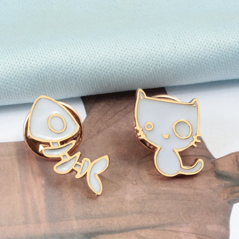Мини-брошь на лацкан с белой кошачьей рыбкой костью, модная шляпа, рюкзак, аксессуары для свитера, Значки для девочек, Мультяшные животные, ювелирные изделия, подарки