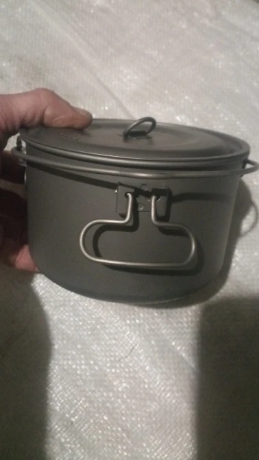 Полностью соответствует описанию, котелок удобный для одного, при транспортировке ничего не помяли, по виду - титан (проверить просто с помощью точила - ярко белая искра). Из недостатков: не продуманная боковая ручка, она отгибается вниз, а не вверх, Соответственно, котелок с ее помощью приподнять нельзя - только тащить.. Она даже немного вредит - из-за дополнительного веса котелок перекашивает на бок.
