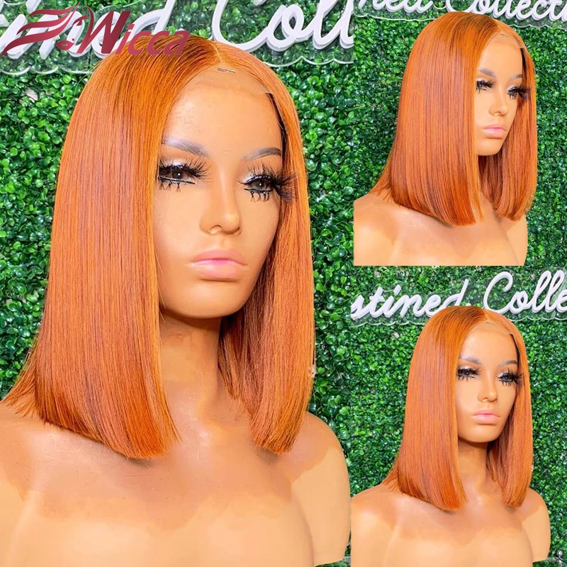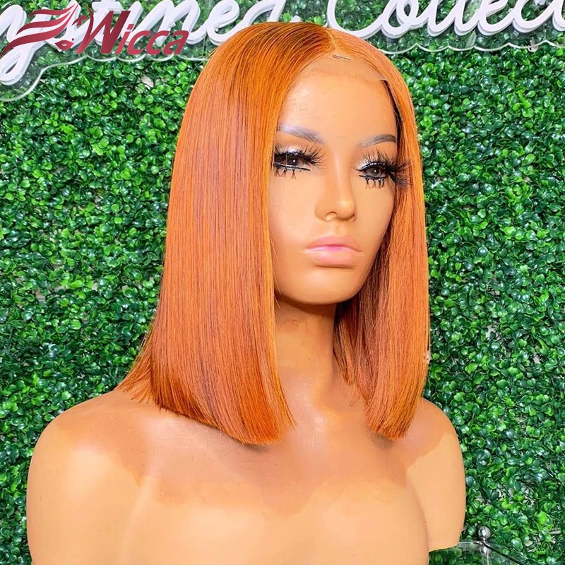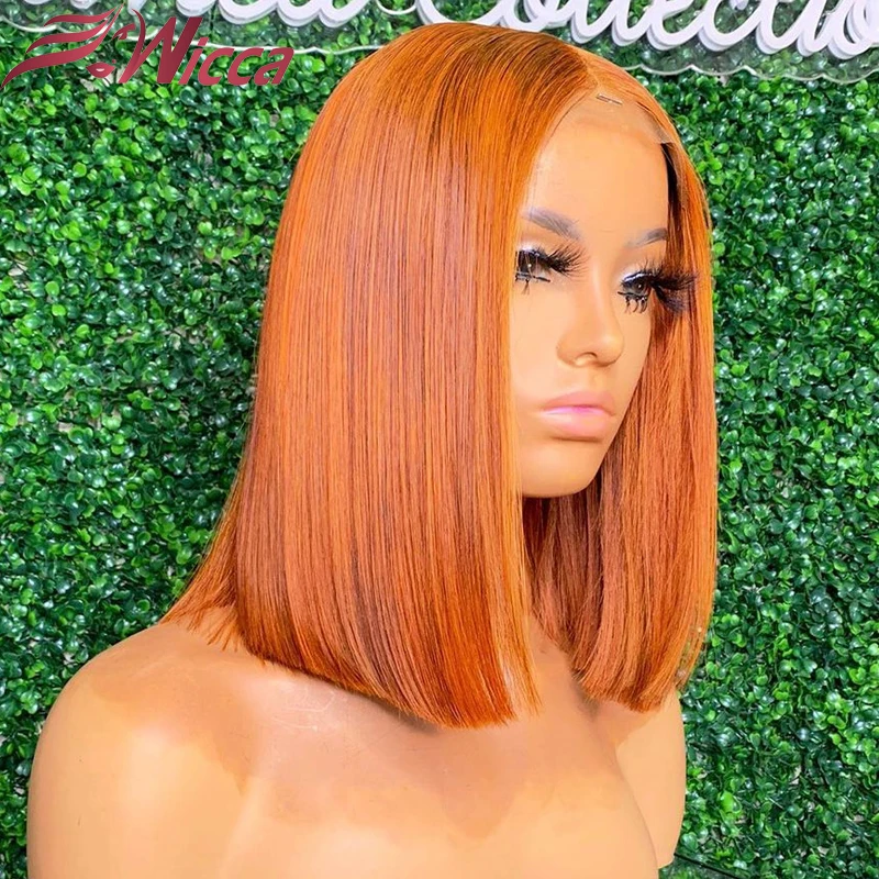 Имбирь Цвет короткий Боб Синтетические волосы на кружеве парик с эффектом деграде (переход от темного к человеческие бразильские парики с детскими волосами Синтетические волосы на кружеве al парик Реми человеческие для Для женщин