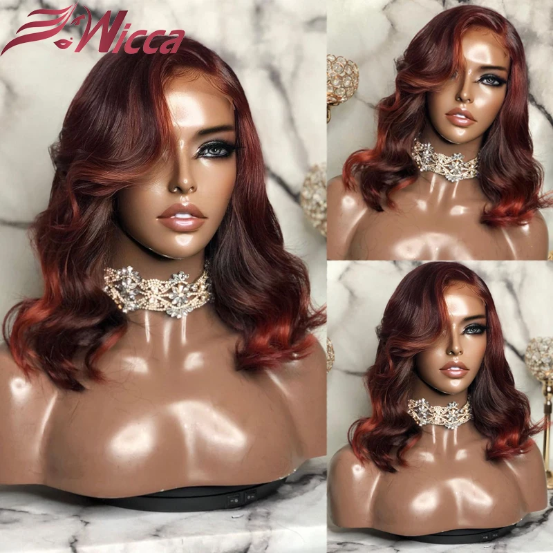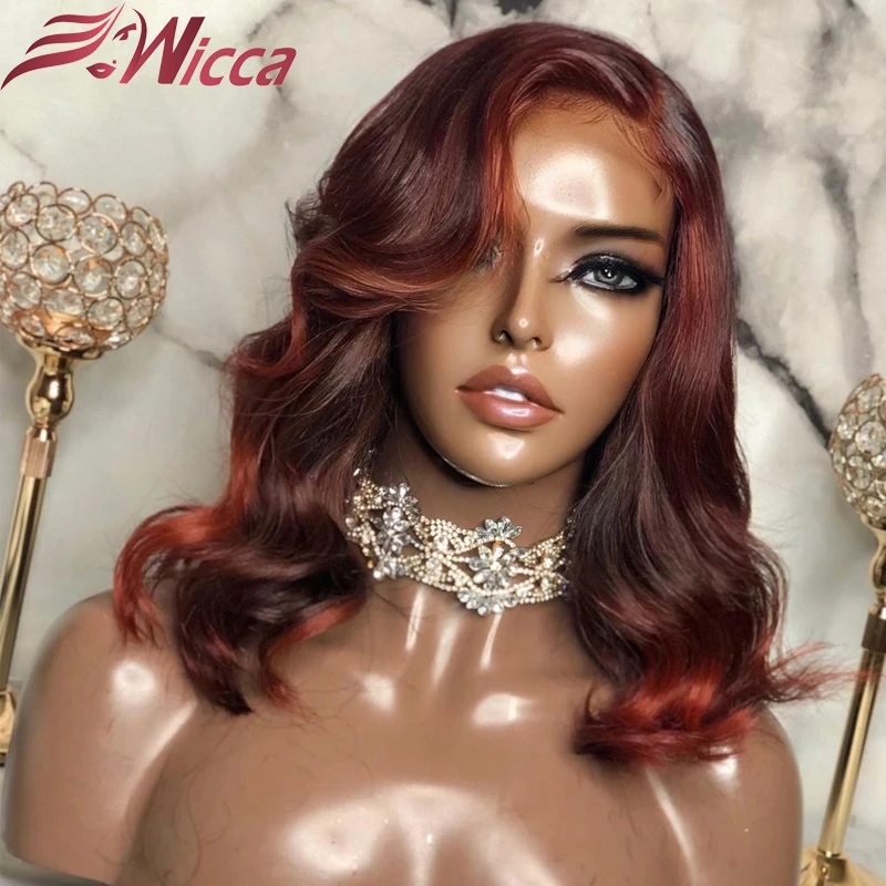 Красный бразильский Волнистый короткий парик Боб на сетке, предвари...