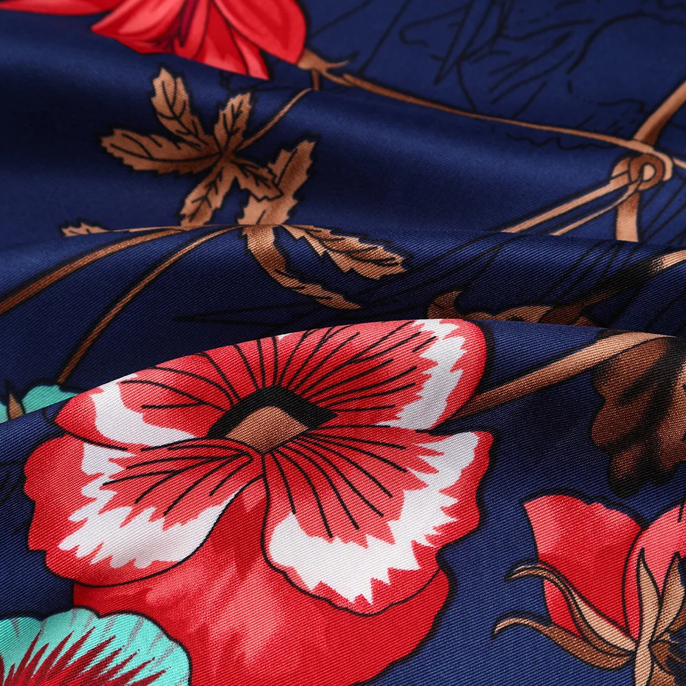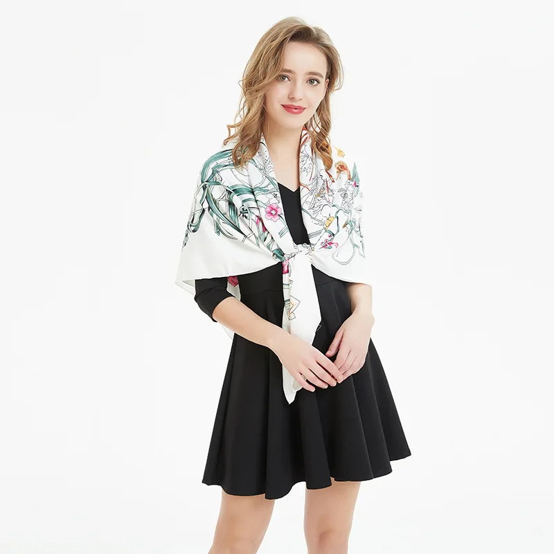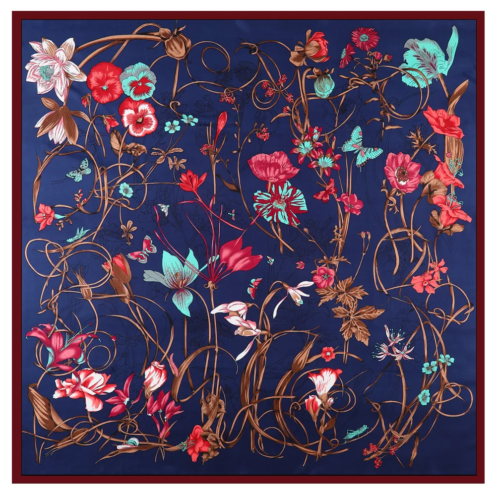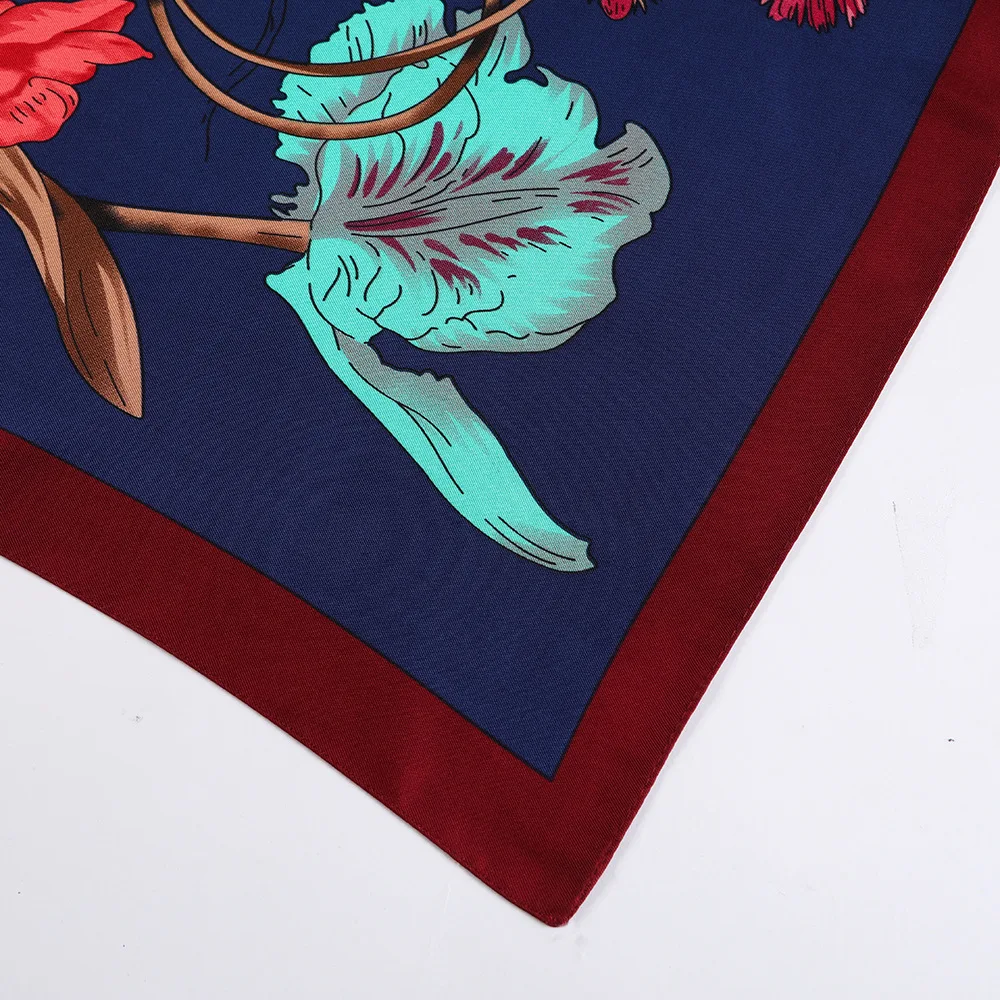 Роскошный брендовый зимний большой квадратный шарф с цветочным принтом 130 см саржевый шелковый шарф женский платок шарфы для женщин модная шаль