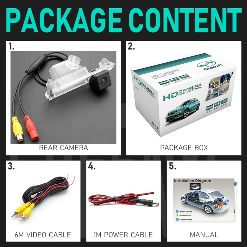 1 x камера траектории обзора Reart1 х 6 м видео кабель1 х 1 м кабель питания1 x Руководство пользователя