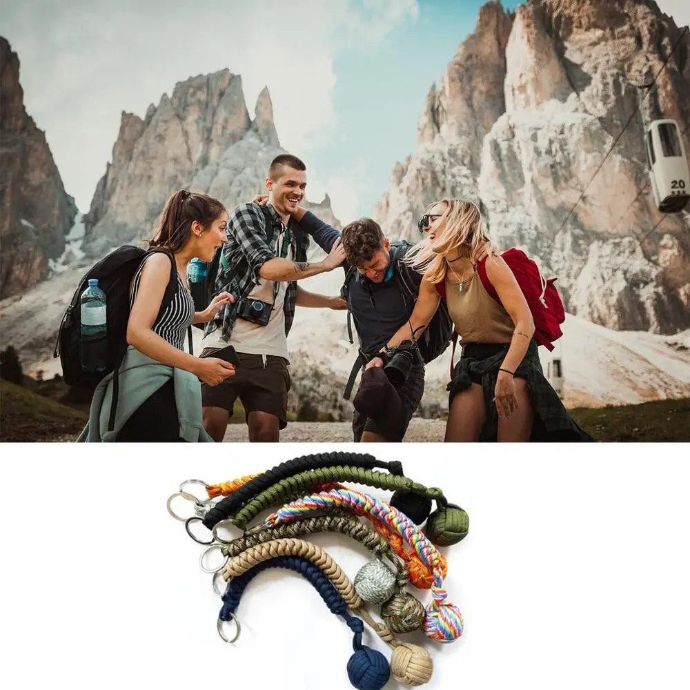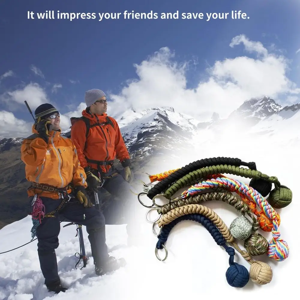 Новый портативный аварийный комплект для выживания на открытом воздухе, для самозащиты, брелок с семиядерным зонтом, брелок ручной работы со стальным шариком