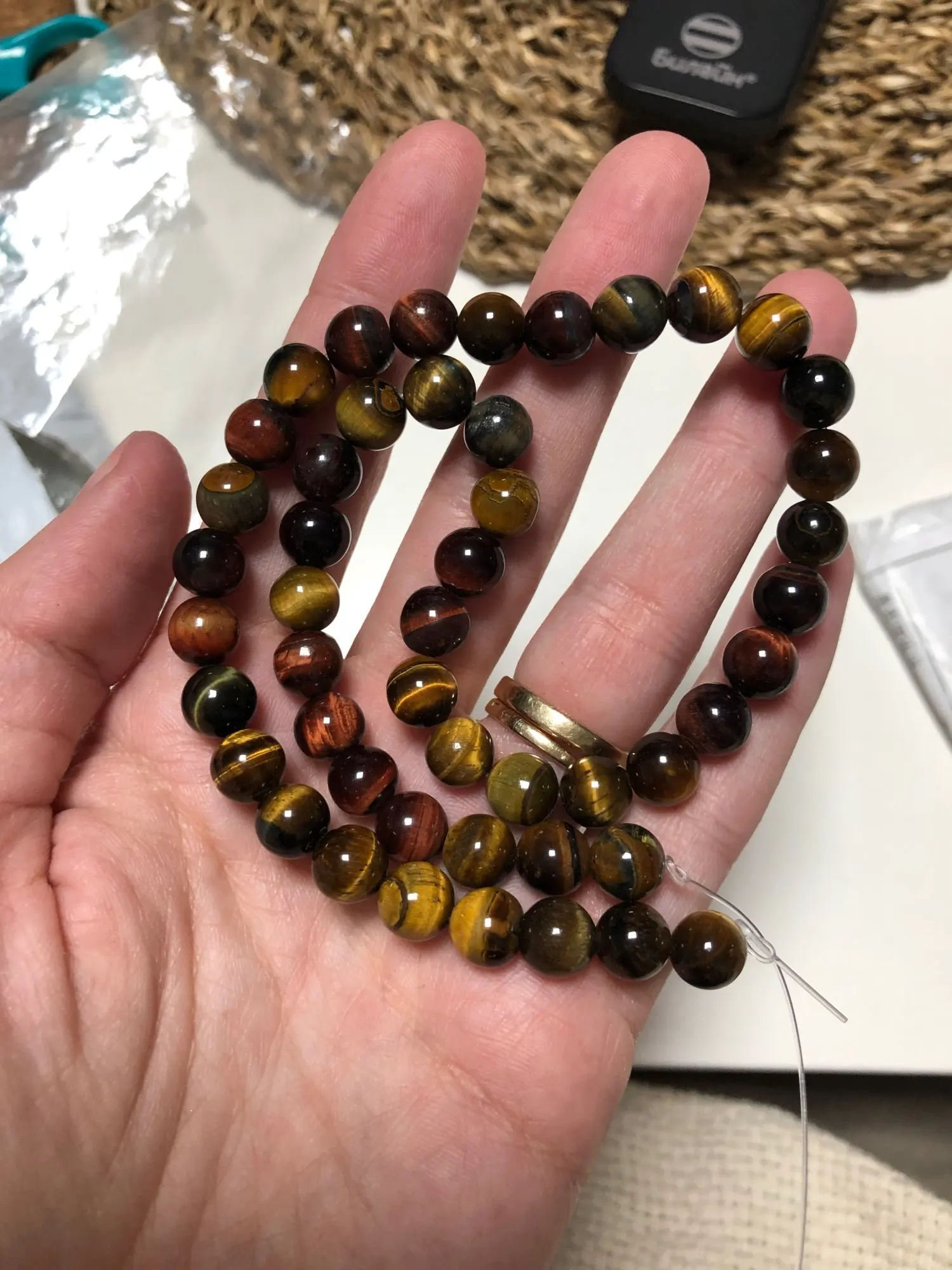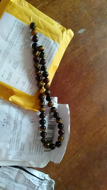 Посылка пришла через 1.5 месяца.Всё в целости и сохранности.Заказывала тигровый глаз разноцветный,нитку 12 мм и нитку 8 мм.Бусины очень понравились.Спасибо продавцу.Рекомендую этот магазин.