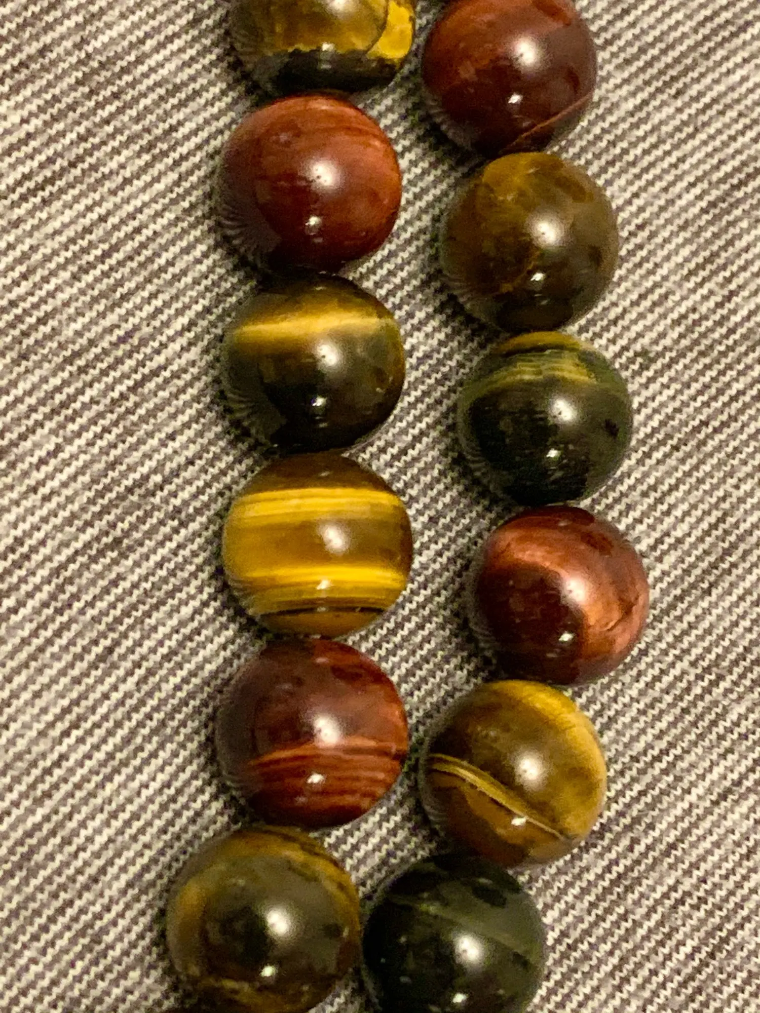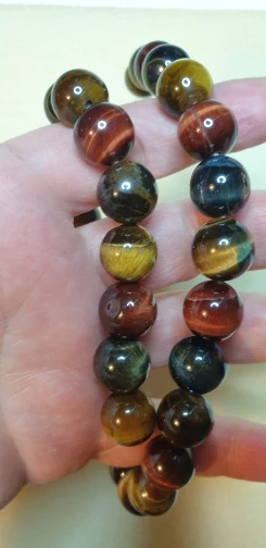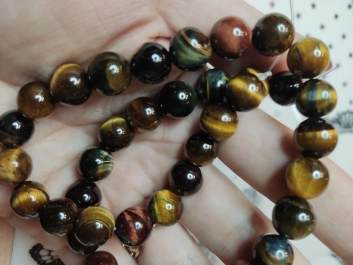 Хорошие бусины как на фотографии - трех разных оттенков. Желтого, красноватого и серого. Заказывала диаметром 10 мм, смотрятся хорошо.
