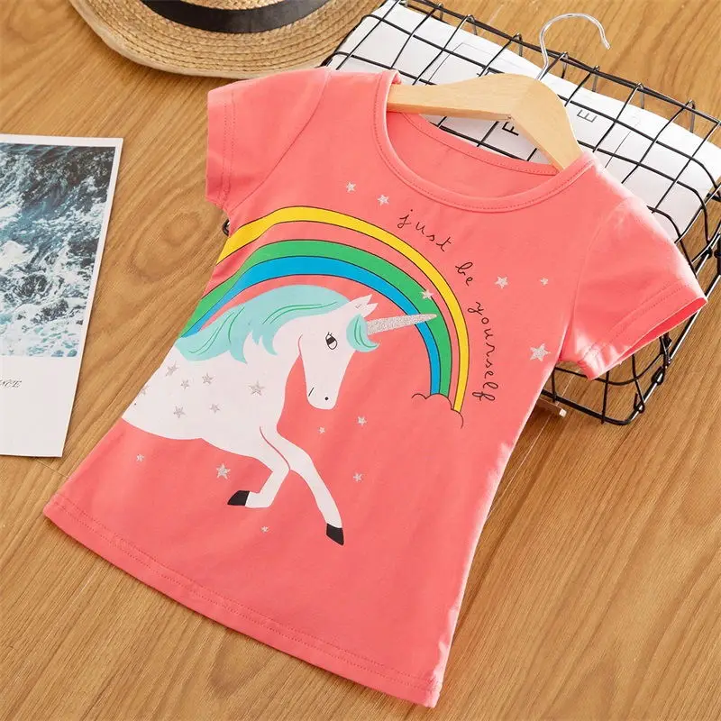 2021 Летняя мода Единорог для девочек, детская футболка с принтом Единорог вечерние топы одежда унисекс для детей рисунок Hello Kitty футболки для девочек; Одежда для детей; Размеры От 2 до 8 лет