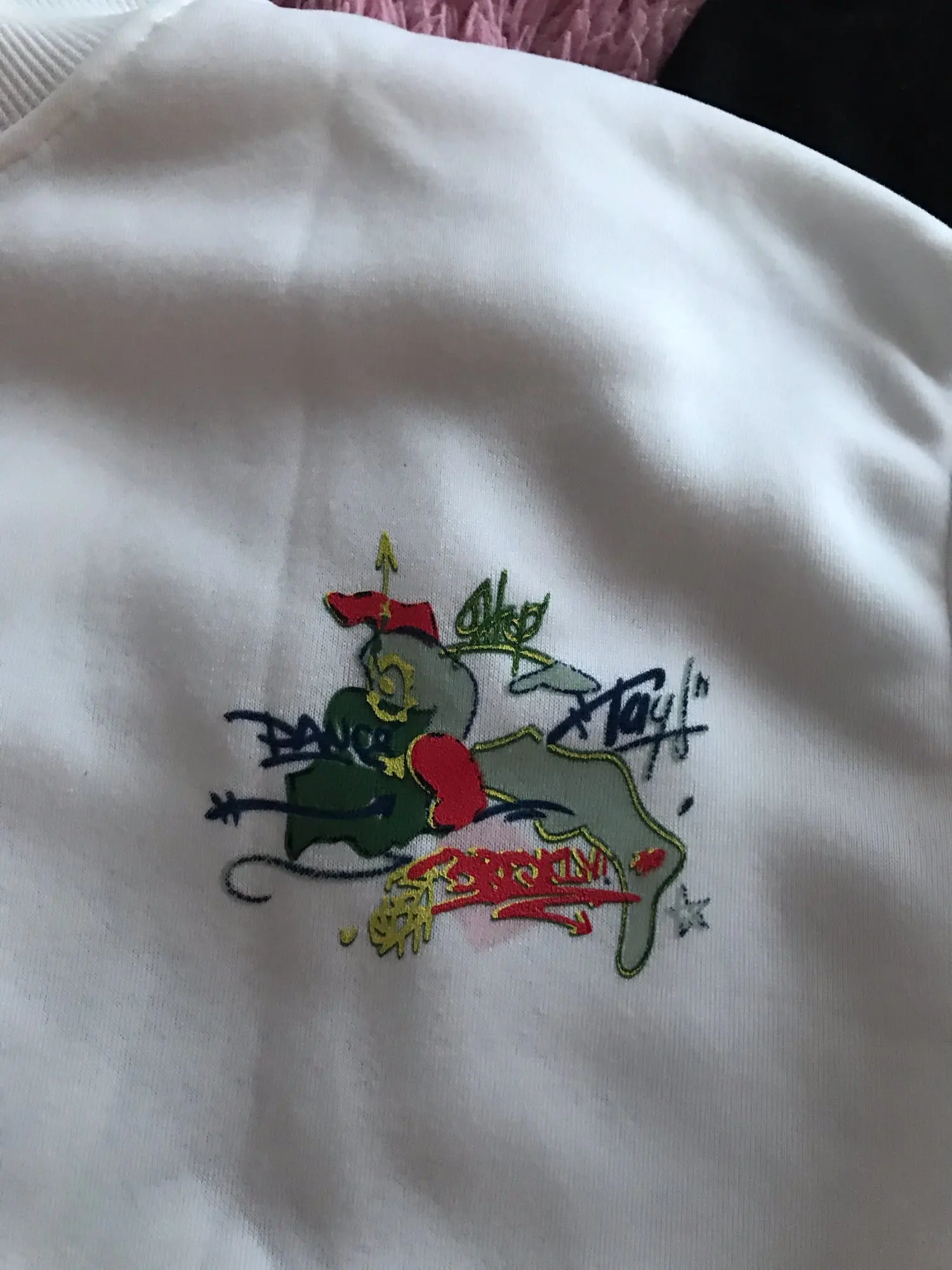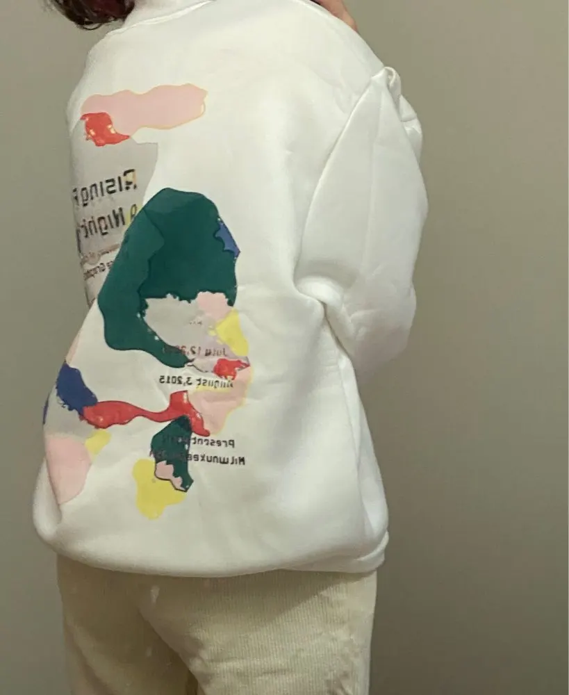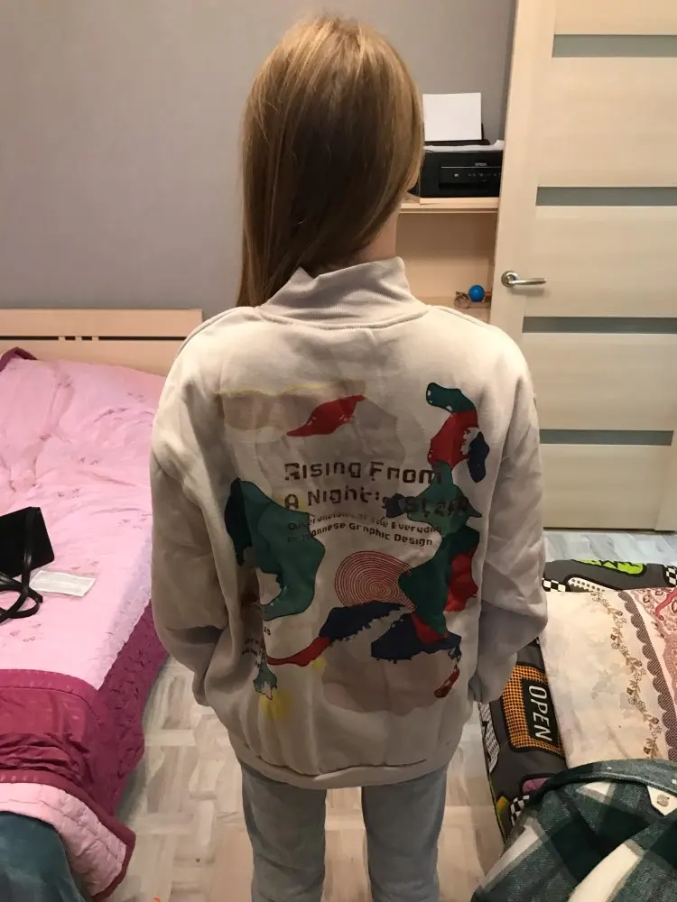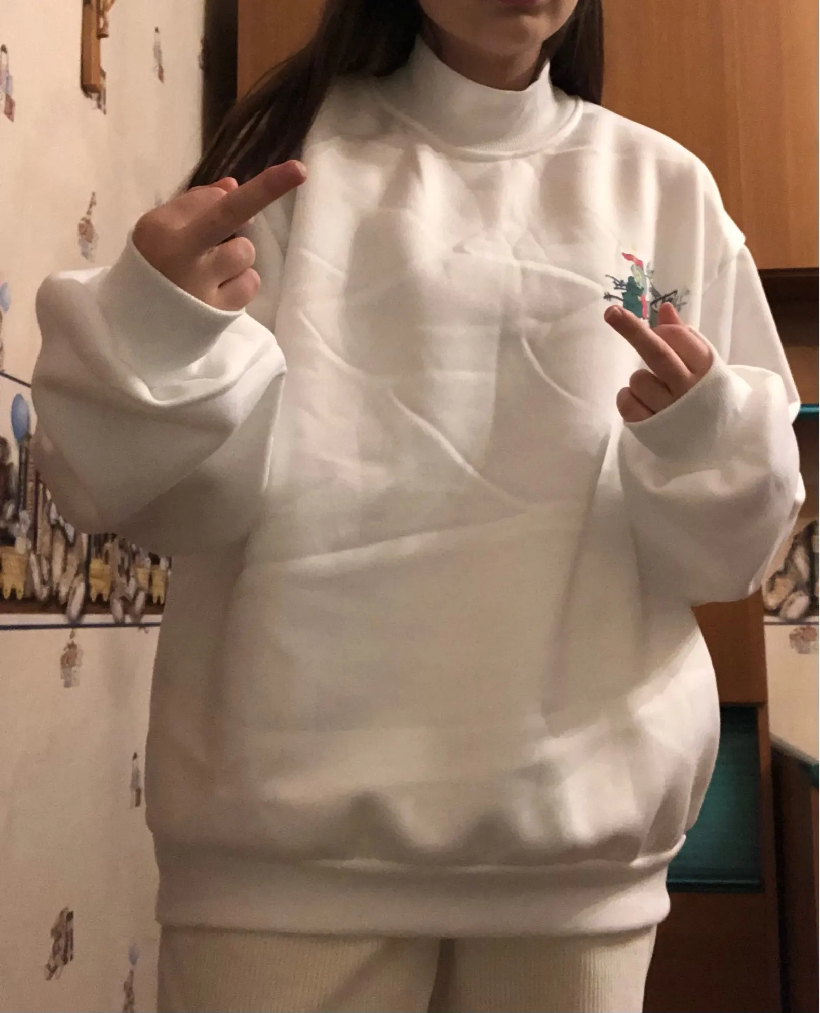 Суперская плотная толстовка! Тёплая и уютная, как раз на зиму. Качественно сшито и яркий рисунок! Брала XL, на мой 48 даже слегка великовато;-) Продавец быстро отправил, быстро дошло, трек отслеживался.