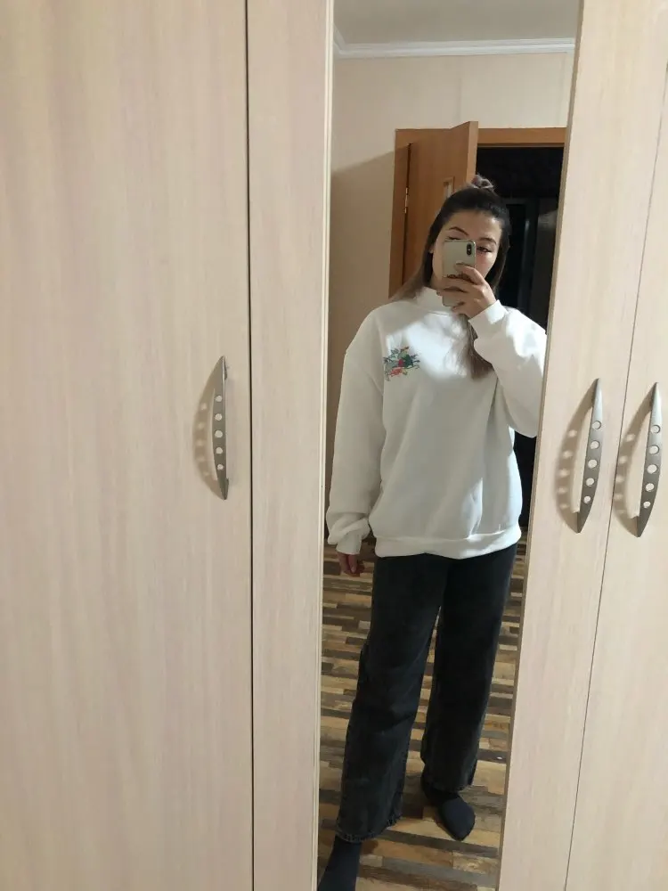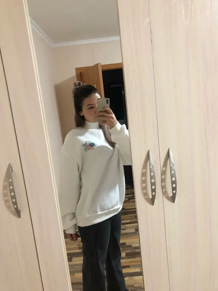 Заказала кофту размера M,в итоге очень большая ,рукава длинные и сама выглядит на размер 48–50. Но в целом интересная модель,отдала в ателье укоротить и ушить рукава