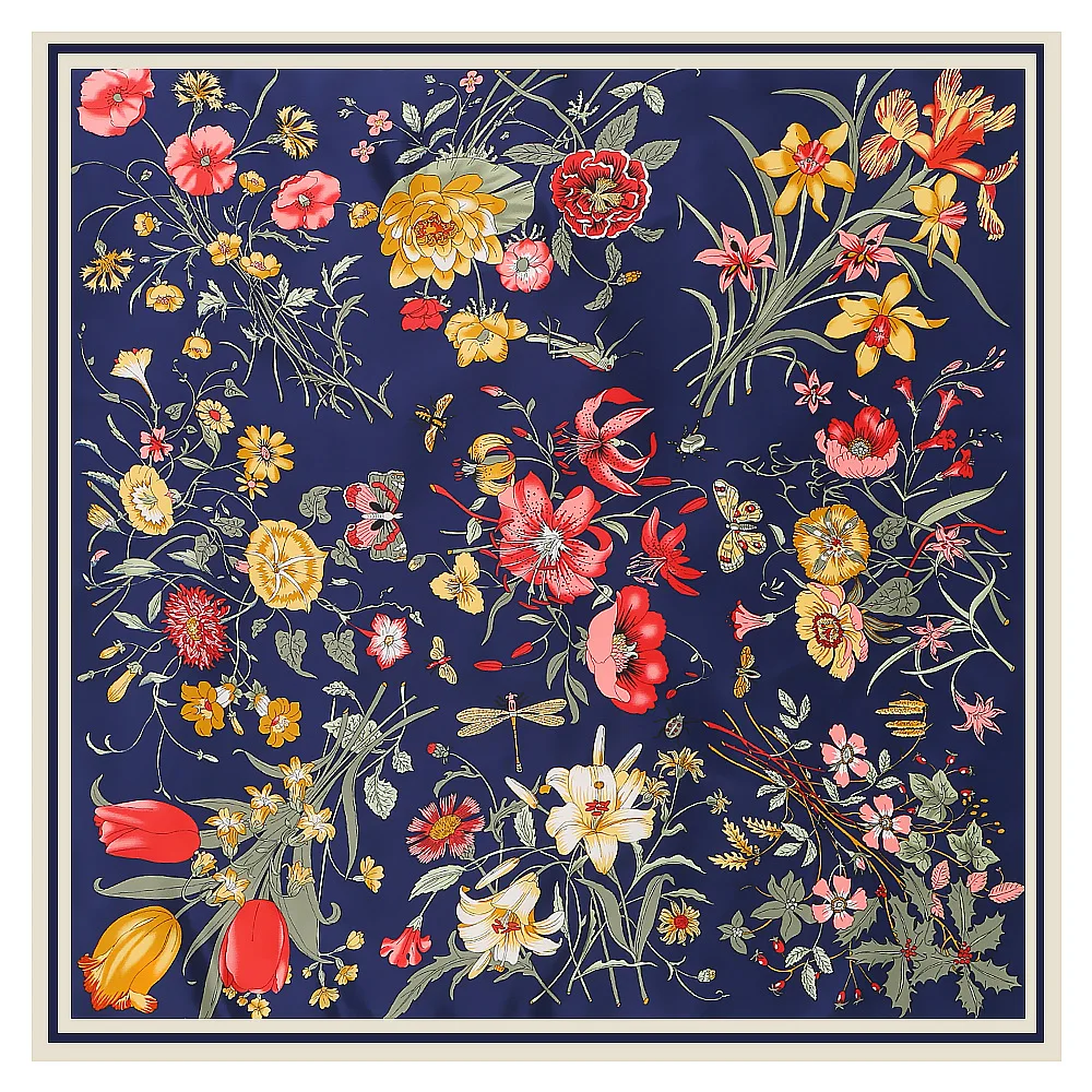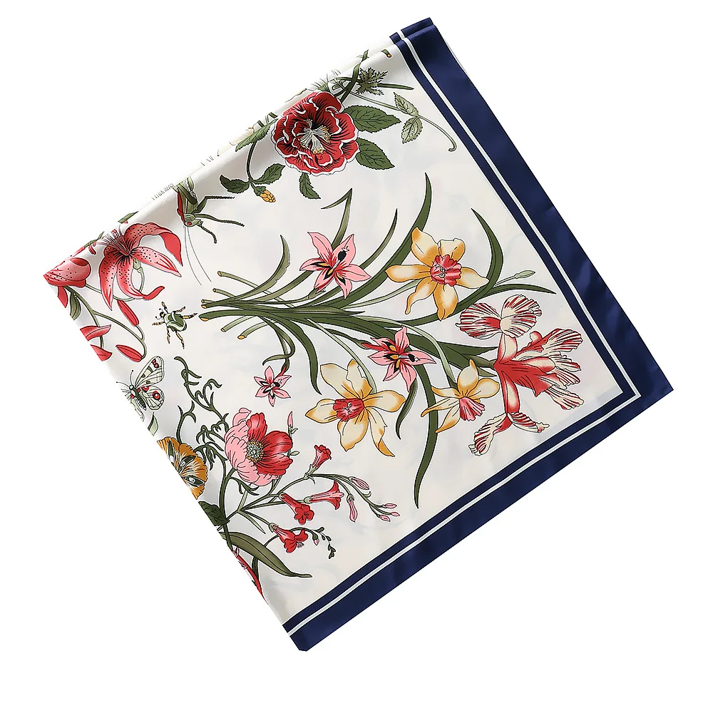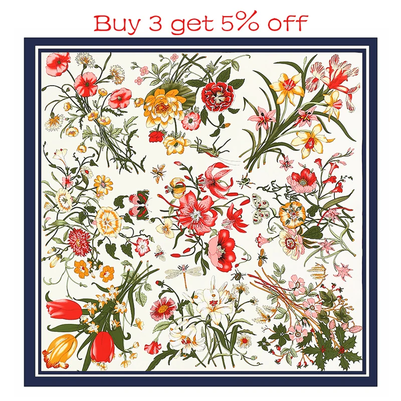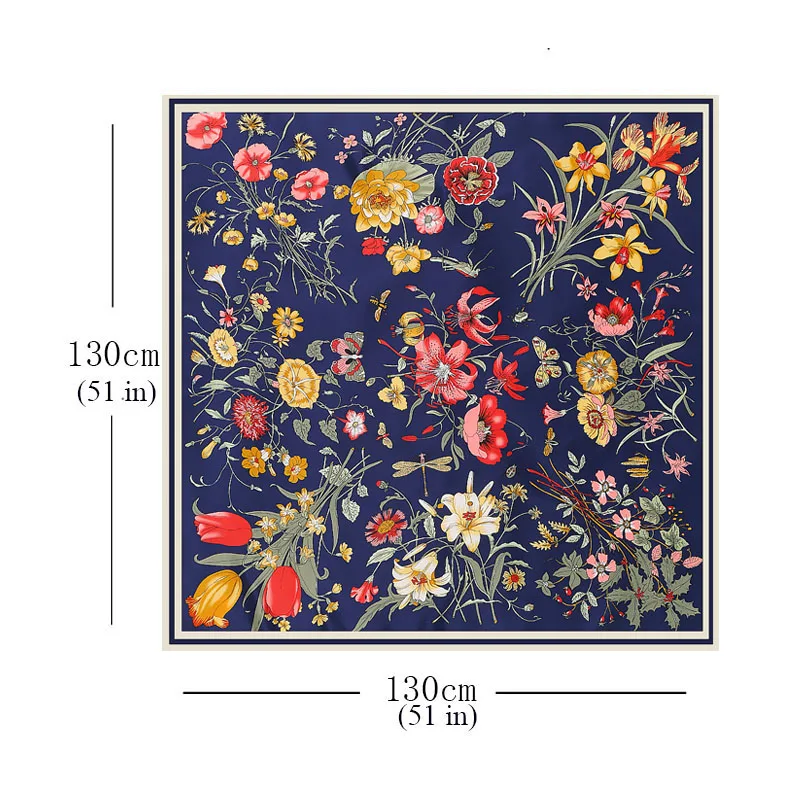 Шарф LESIDA из чистого шелка, женский, большой, квадратный, с цветочным узором, платки, платки, банданы, 130*130 см