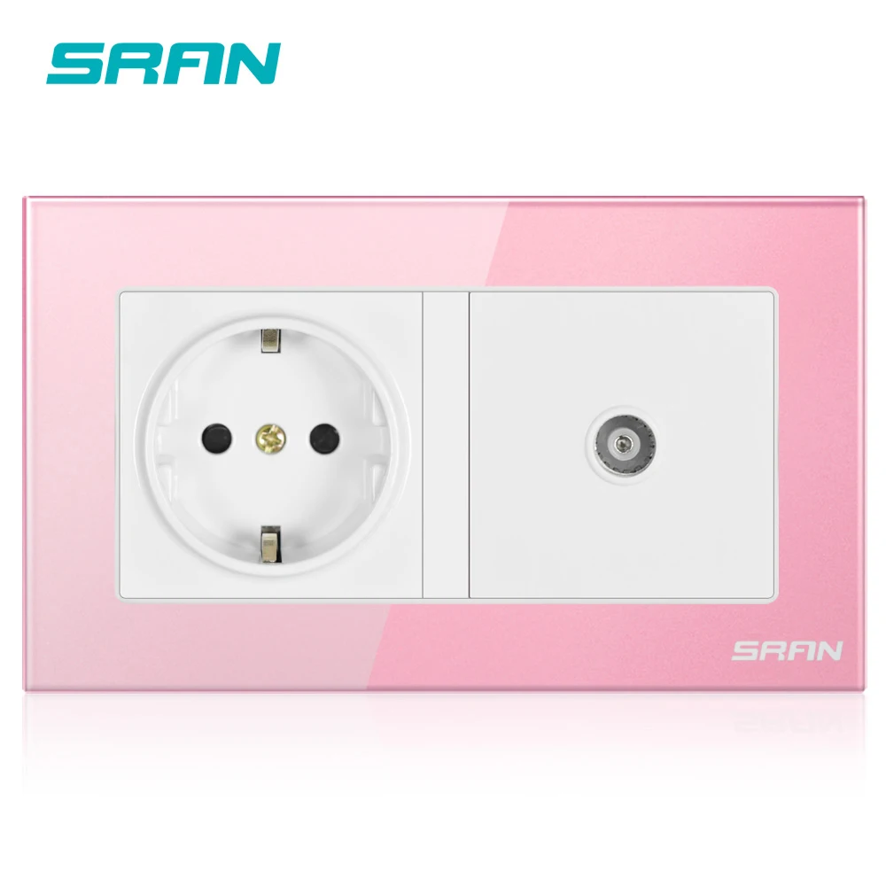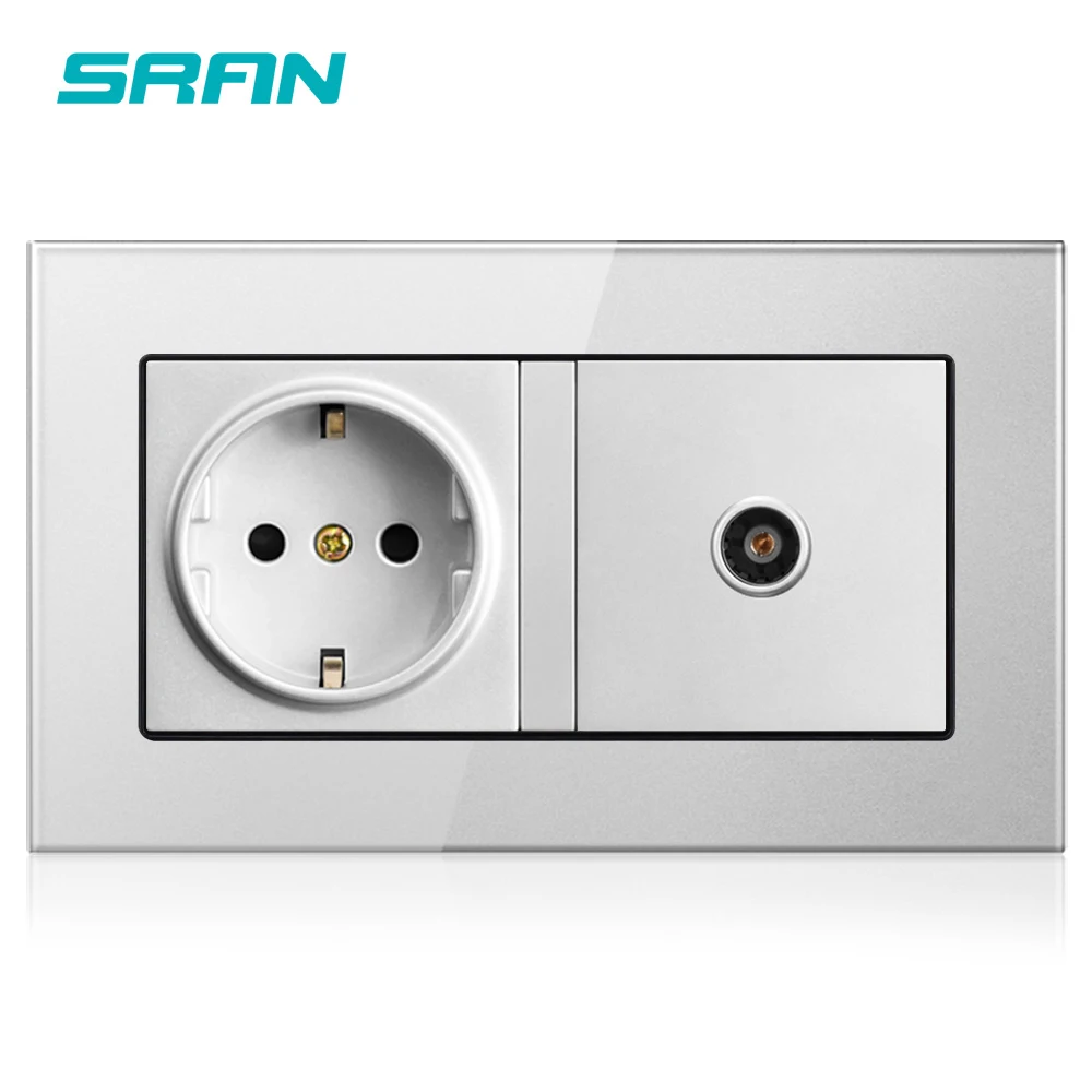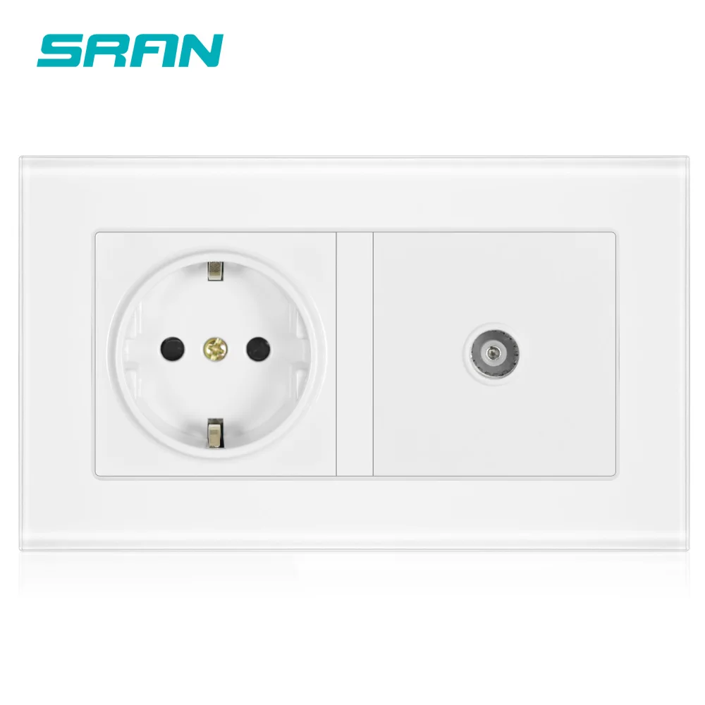 SRAN 16 А Россия, Испания, рандомная розетка с заземлением и гнездом для телевизора, закаленная стеклянная панель