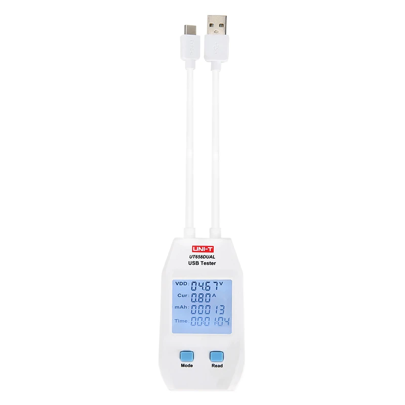 На второе поколение UT658 серии тестеры USB может проверить usbchargers, портативные Хранители заряда источников, Кабель с разъемом USB типа A и C кабели и других электронных зарядных устройств. UT658 измеряет выходное напряжение, ток, энергию, емкость, эквивалентное сопротивление цепи, D + andD-напряжение usb-кабелей для передачи данных. Эта серия предназначена для точного, надежного, стабильного и портативного использования. Они являются отличными инструментами для применения, такими как проверка производства, тестирование инженеров и DIYers.