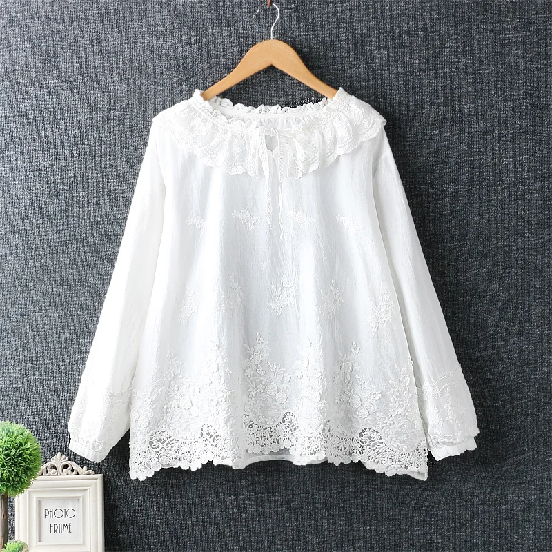 Lamtrip милый кружевной воротник Питер Пэн с бантом свободная 3D рубашка с цветами Стич кукла Мори девушка