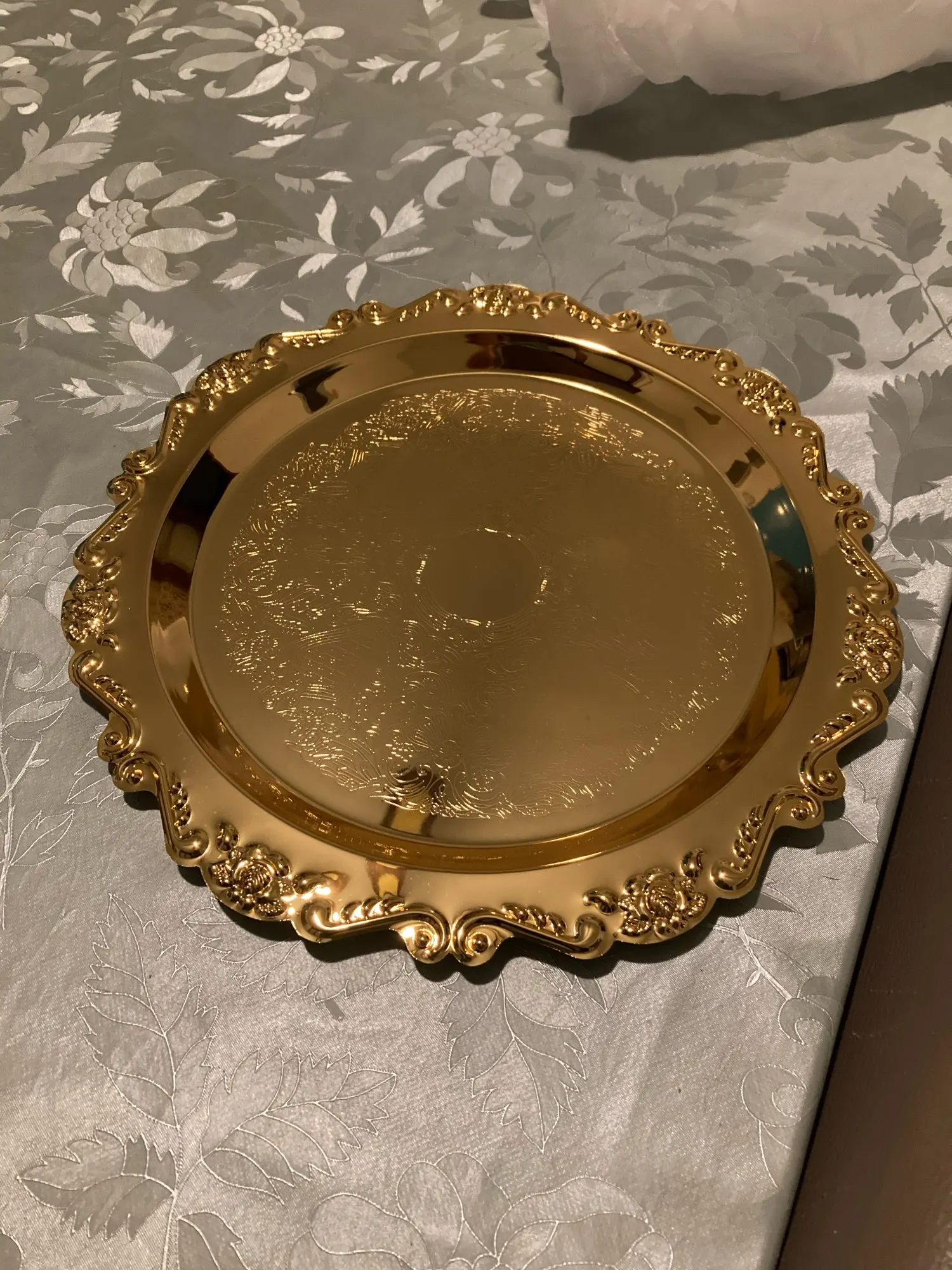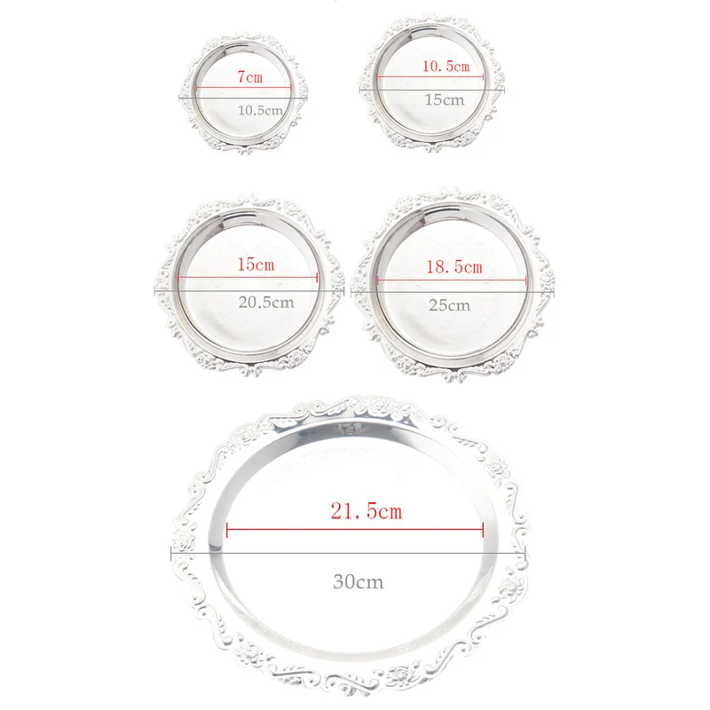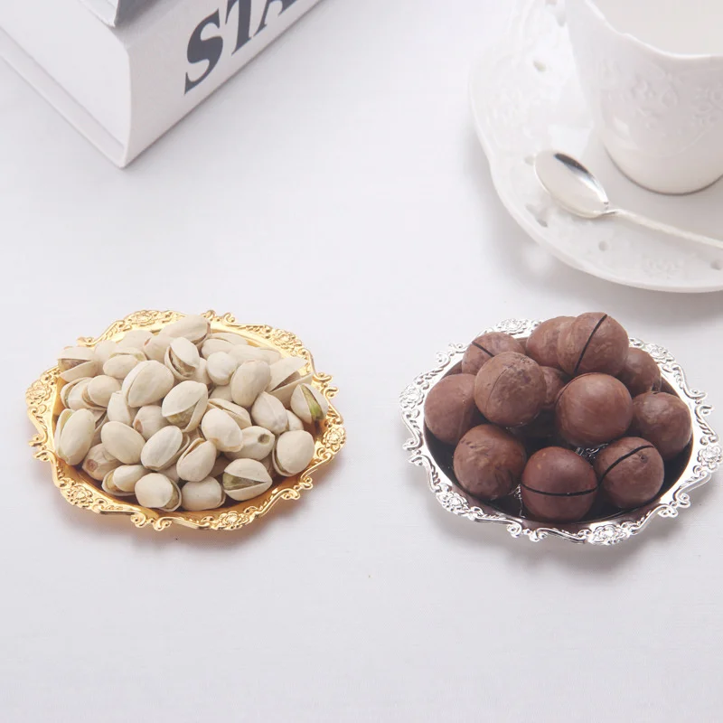 Железная тарелка серебристого и золотистого цвета, глянцевая тарелка для украшения буфета, фруктового торта, товары для вечеринок, тарелки для хранения десертов и всякой всячины