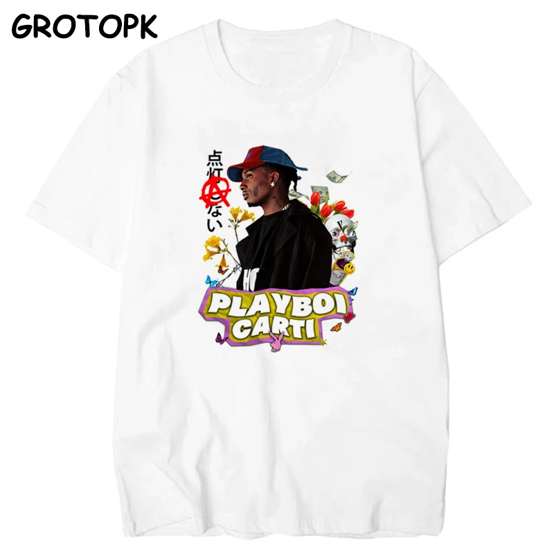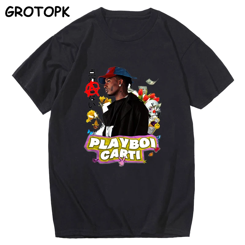 Футболка PLAYBOI CARTI для мужчин и женщин, винтажная хлопковая рубашка в стиле унисекс, крутая уличная одежда рэп для музыки, черный красный цвет