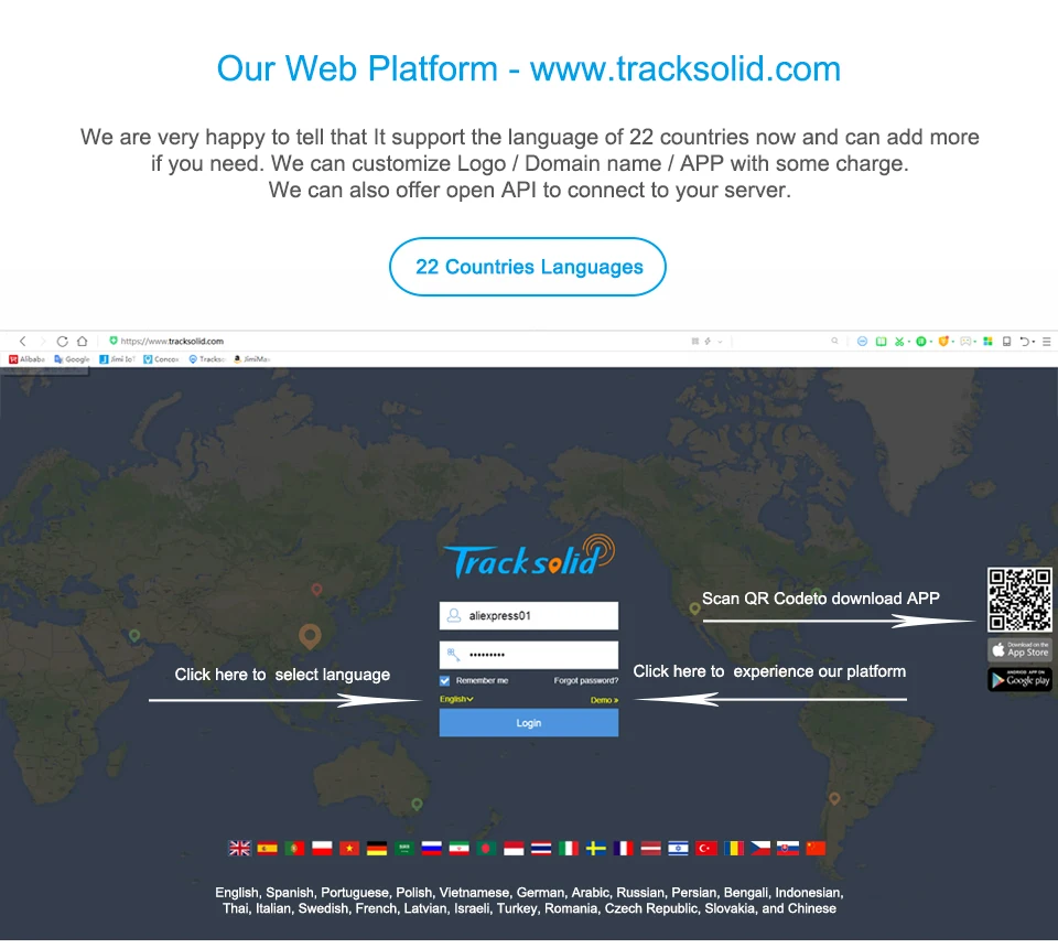 6. Наш Tracksolid поддерживает несколько языков, вы можете определять и изменять языки отображения.