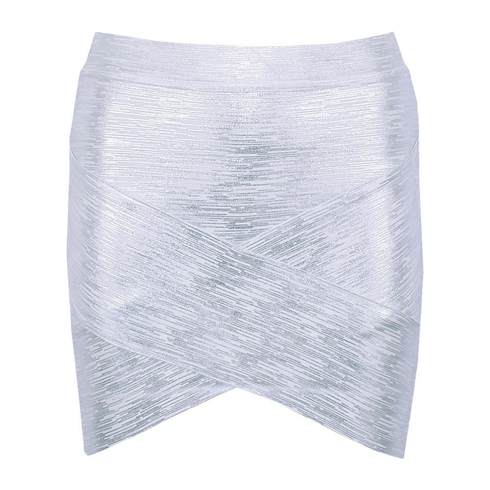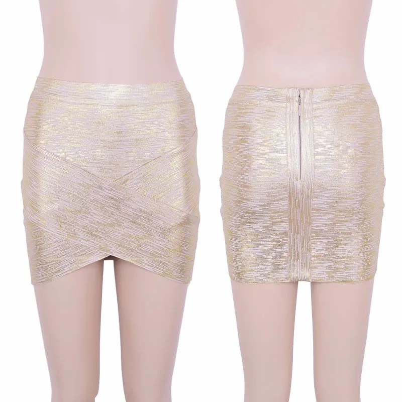 Миниатюрная юбка-карандаш из искусственного шелка в форме Креста с высокой талией 2015, оптовая продажа, металлик, золото