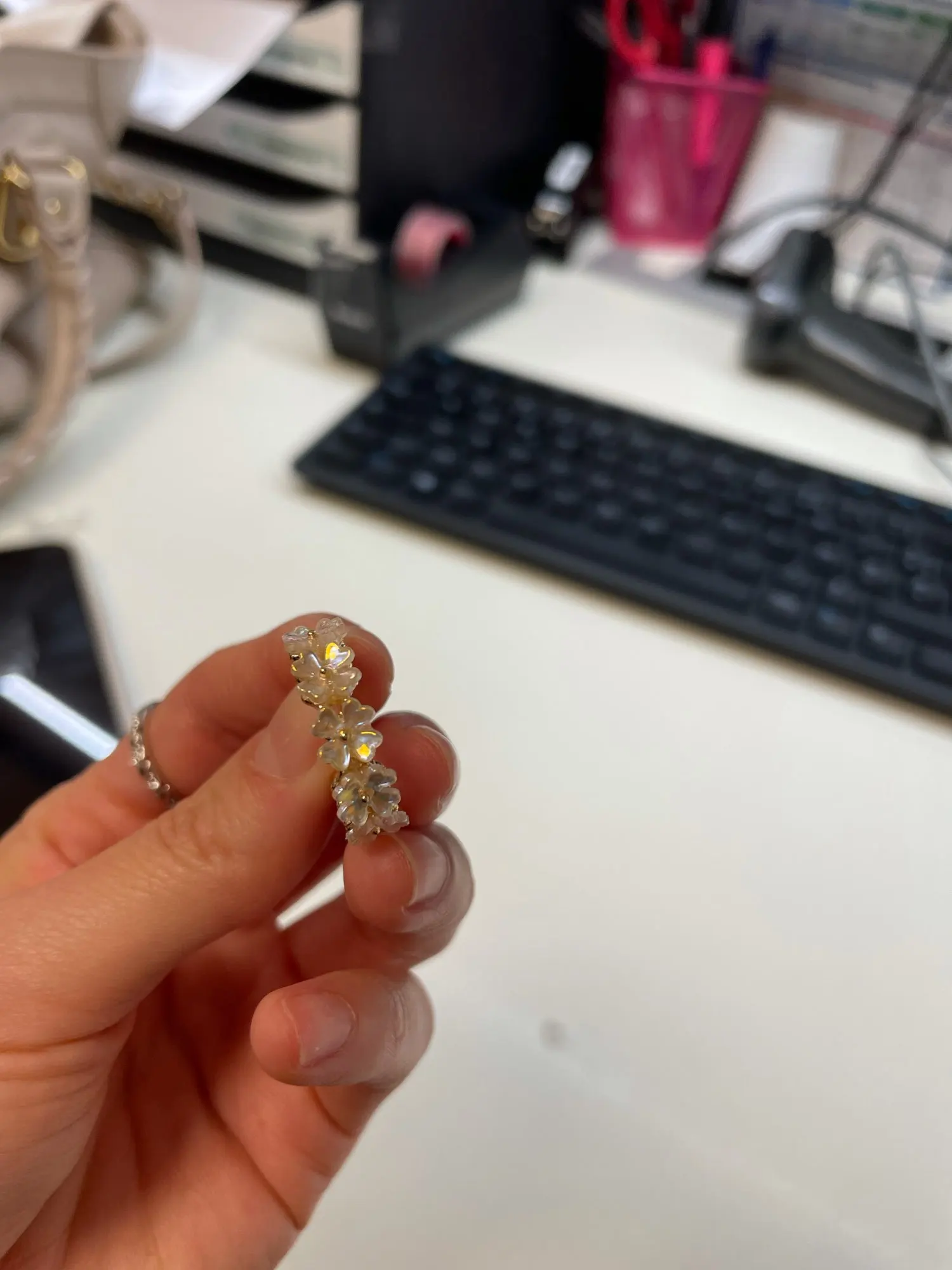 Très belle boucle d’oreille. Cependant une petite fleur c’était décrochée (sans doute du au transport), un petit point de colle a été nécessaire