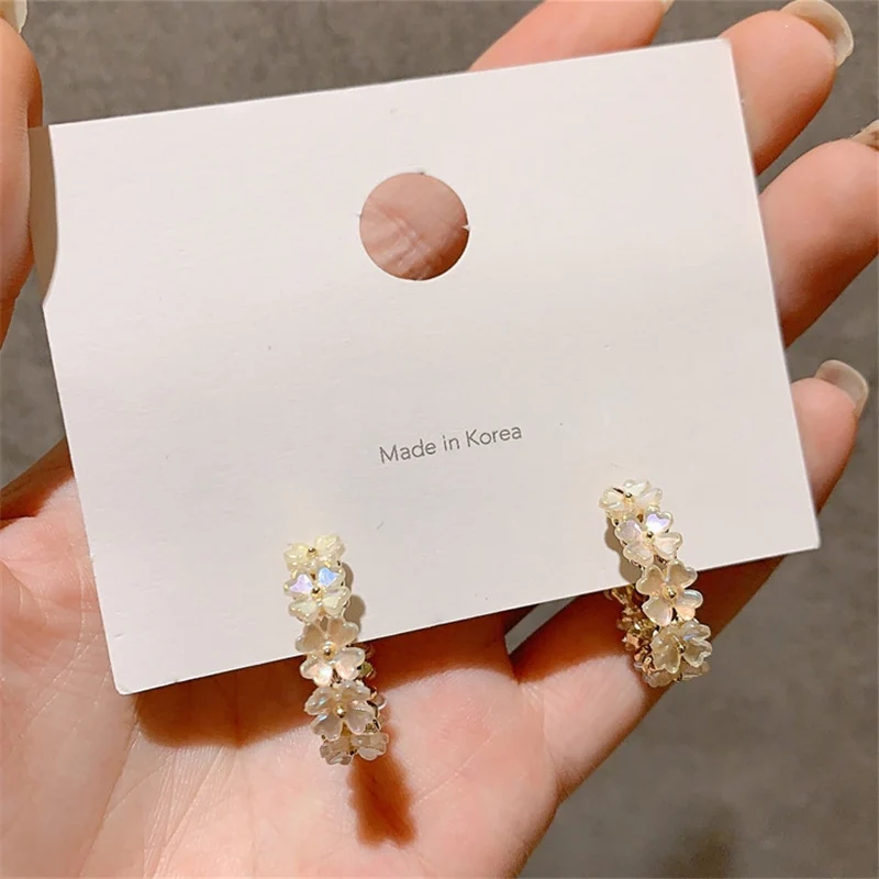 Женские серьги-кольца с ракушками MENGJIQIAO, новые элегантные кольца цветок геометрической формы, подарочные украшения