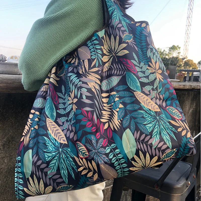 Нейлоновая складная сумка для покупок из переработанных материалов, Экологичная женская сумка многоразовая сумка для покупок с короткими ручками, цветочный принт, фрукты, овощи, продуктовый карман